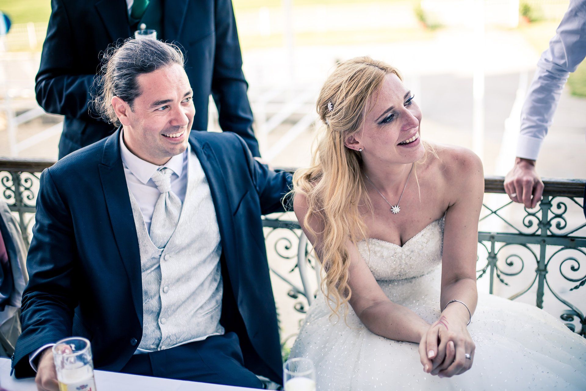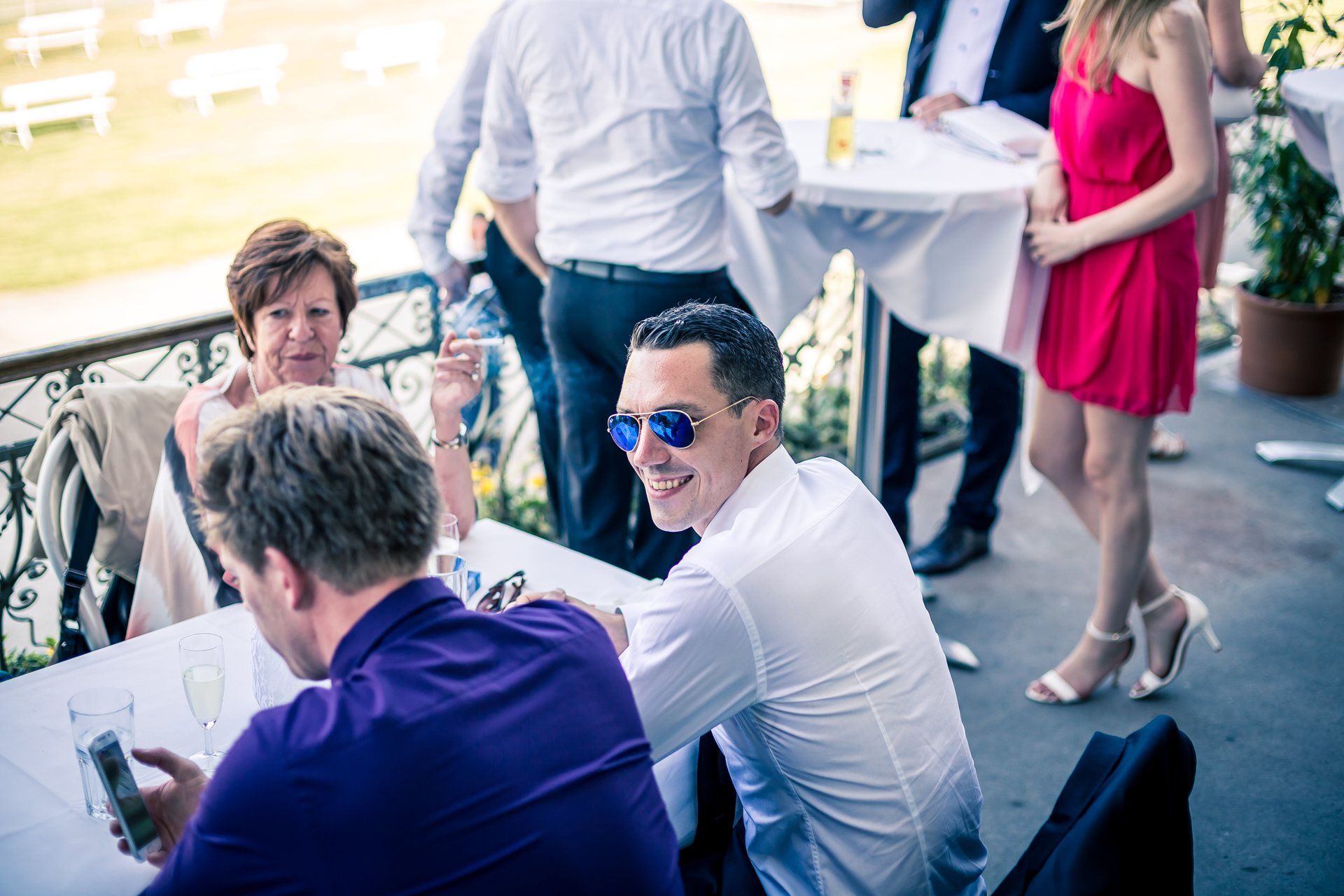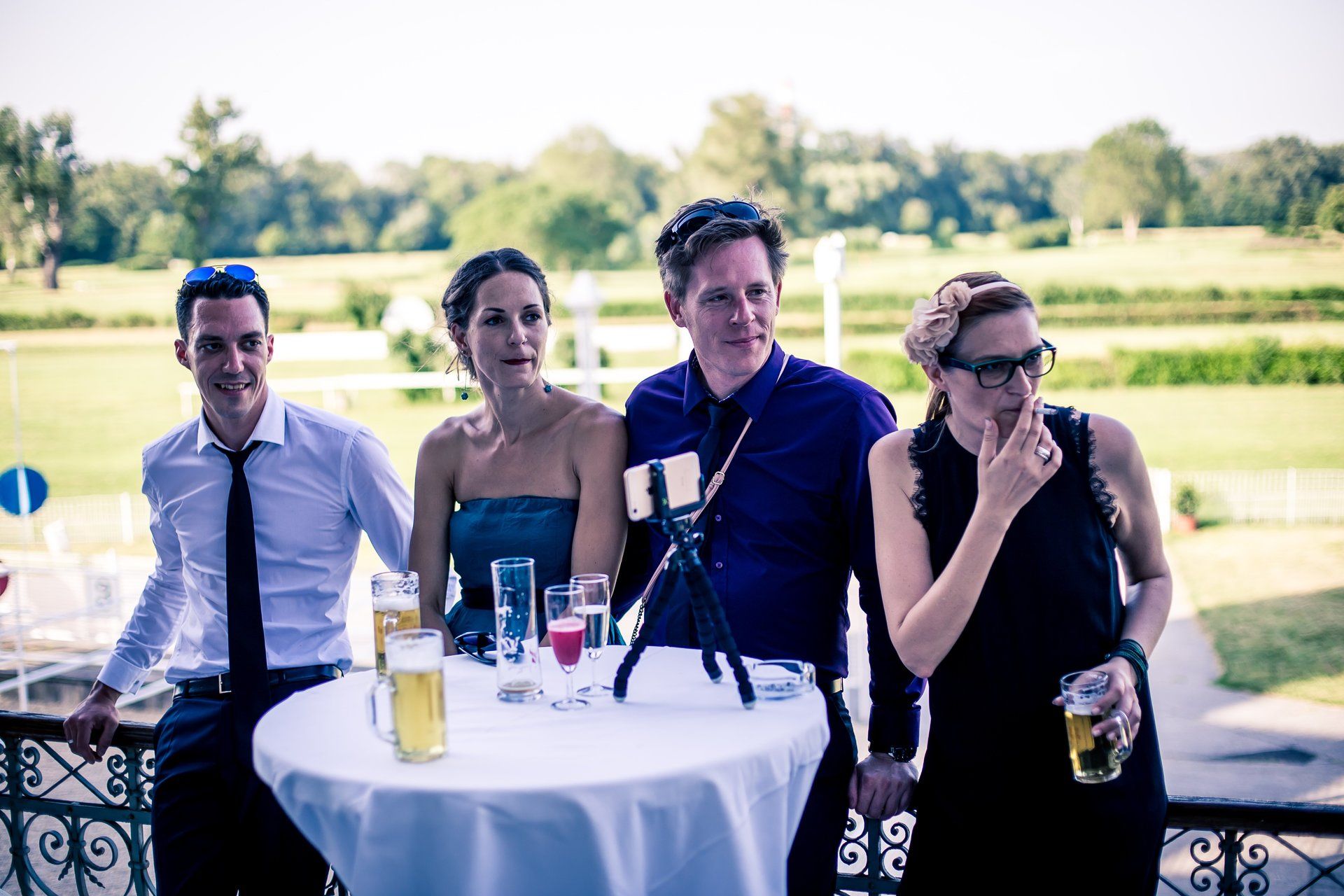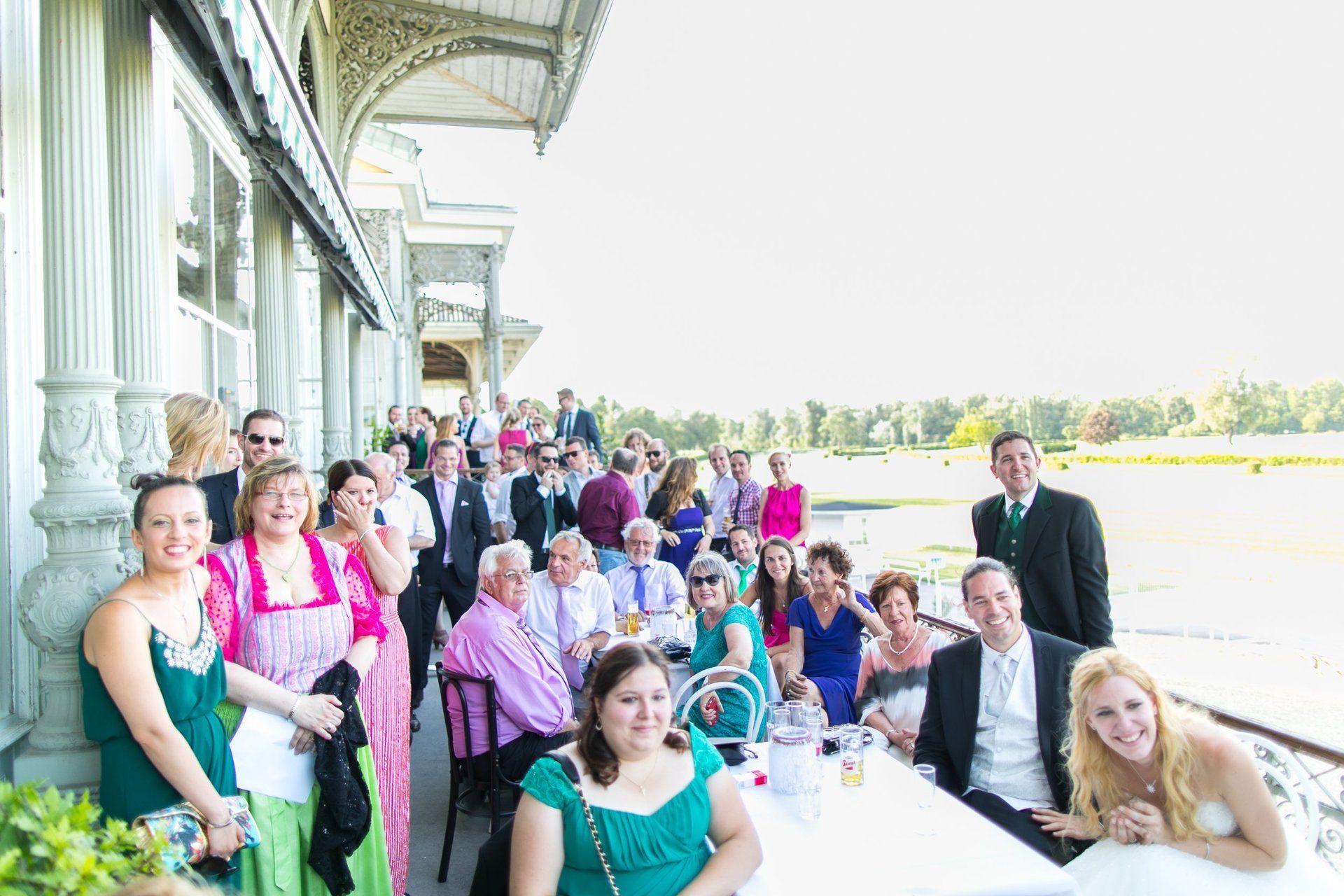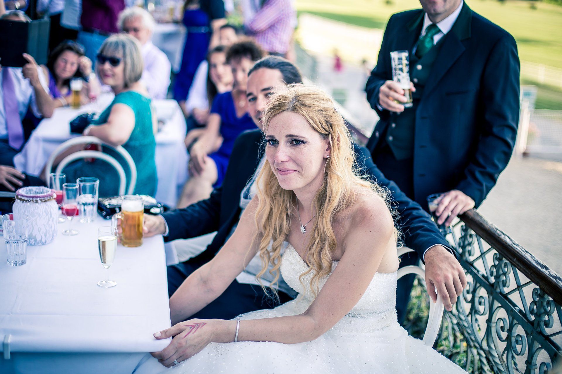 Der Empfang fand bei strahlendem Sonnenschein auf der Terrasse der Kaiserloge statt, bevor es später zum Essen nach drinnen ging. Ein großes DANKE an dieser Stelle an den Brautpapa, der eine so schöne, emotionale Rede gehalten hat und an Diana, die sich so viel Mühe gemacht hat mit Ihrer Überraschung. Frau Ukelele, Du bist der Knaller! Ohne Dich gäbe es uns nicht.