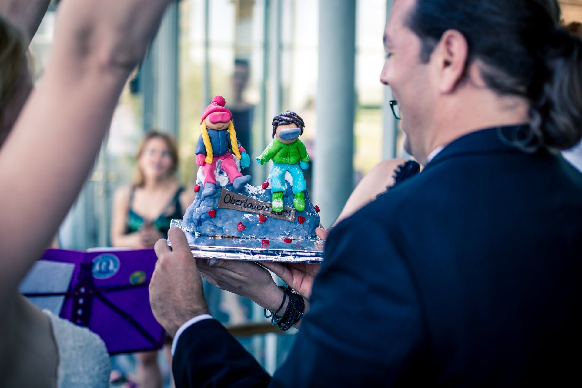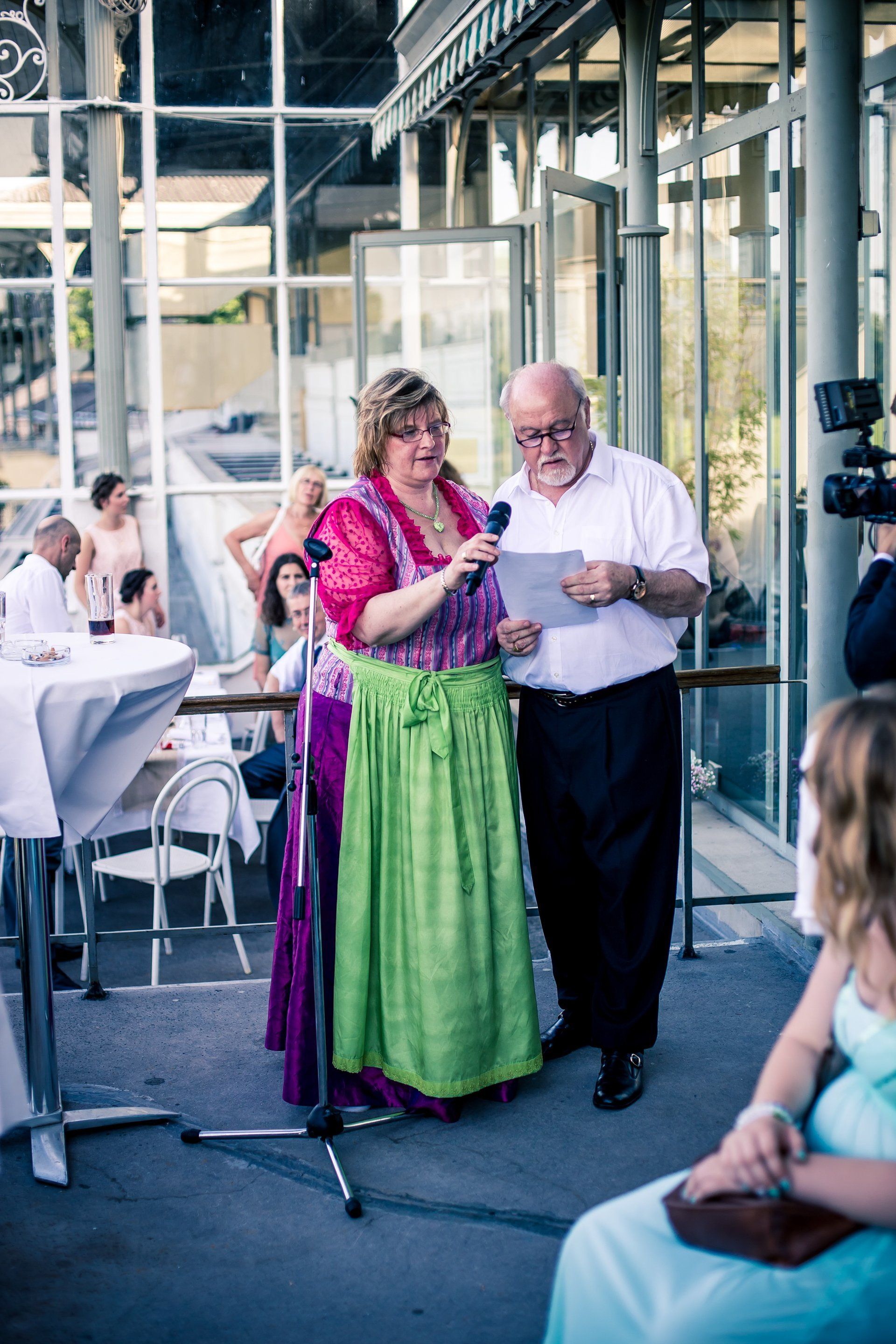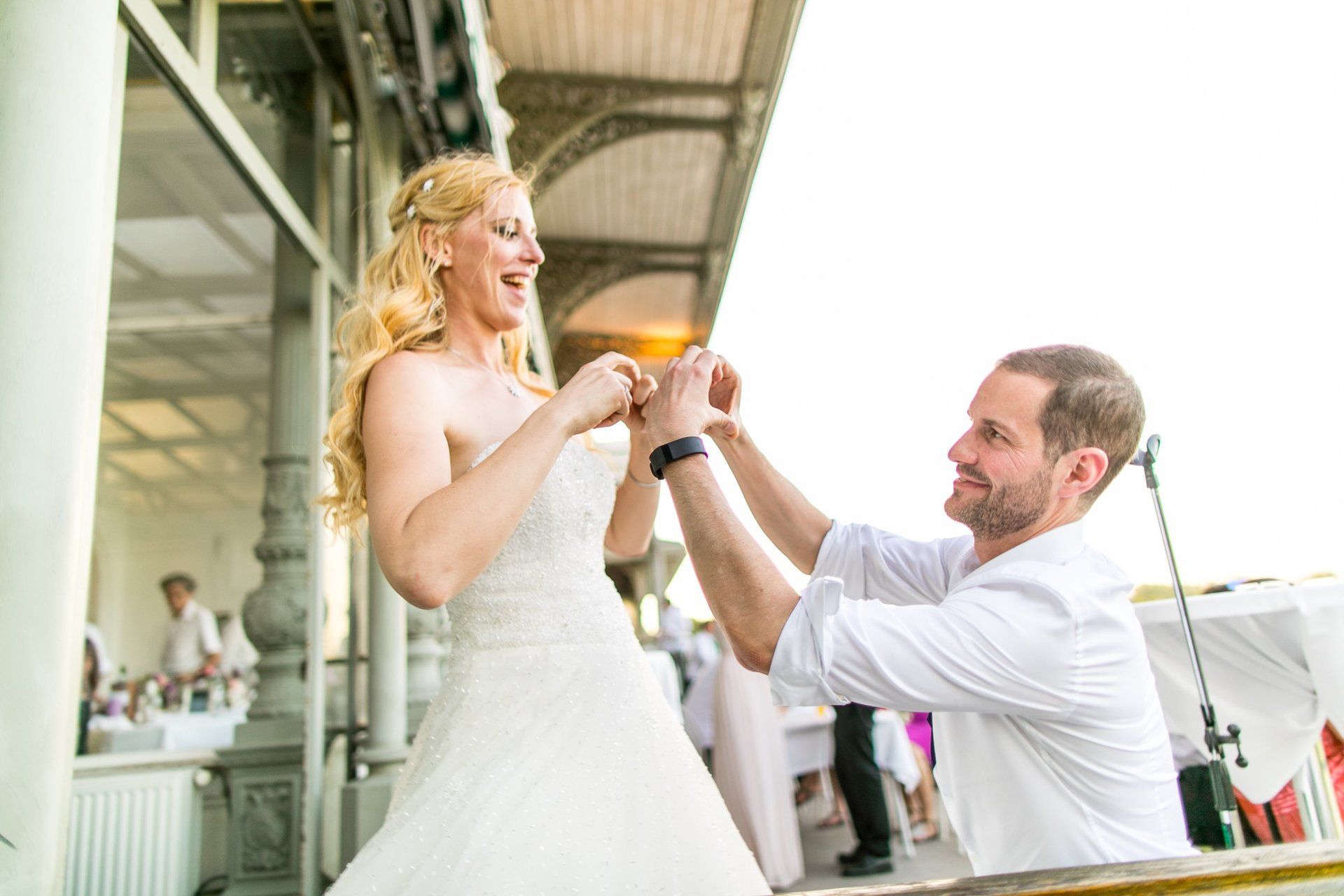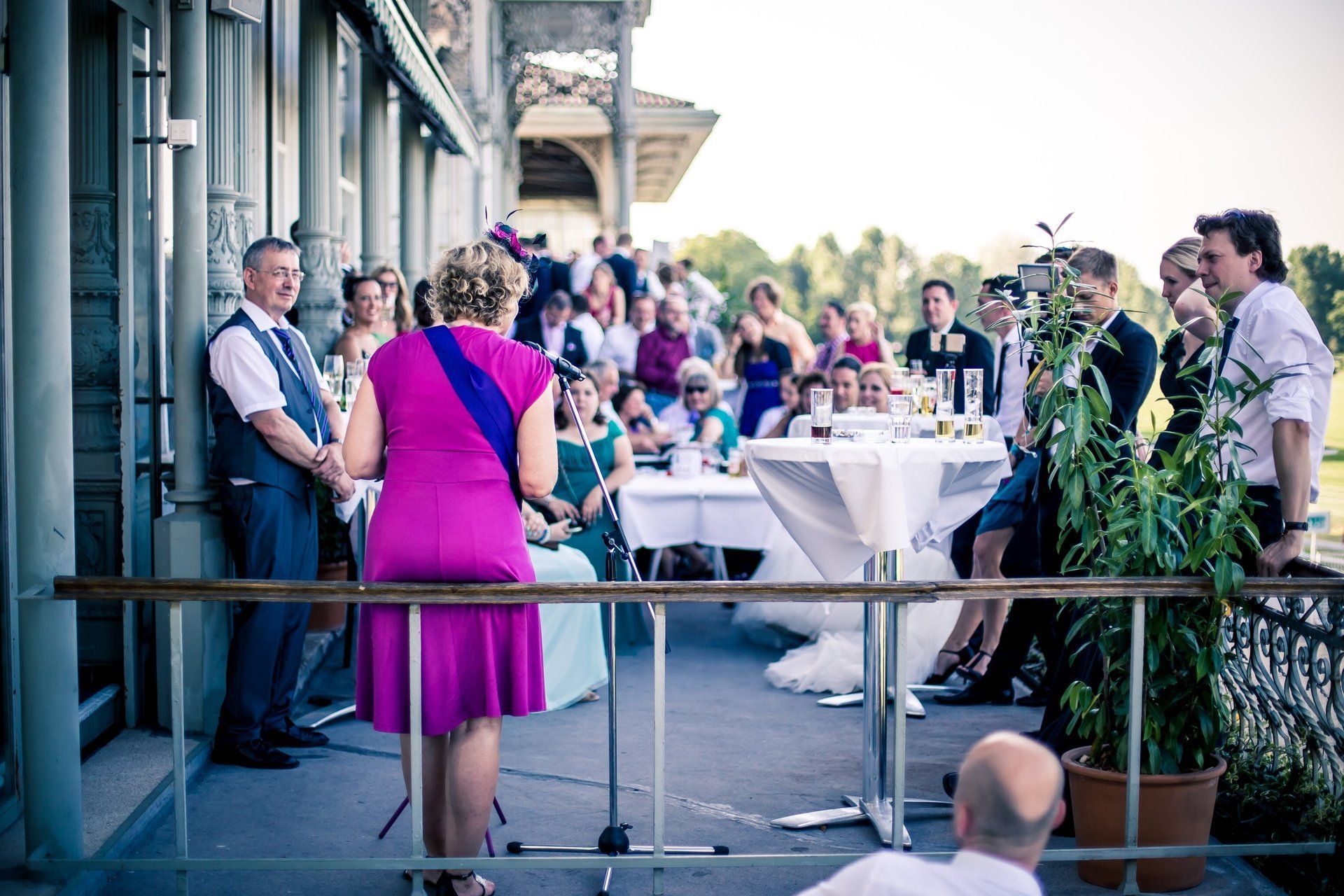 Der Empfang fand bei strahlendem Sonnenschein auf der Terrasse der Kaiserloge statt, bevor es später zum Essen nach drinnen ging. Ein großes DANKE an dieser Stelle an den Brautpapa, der eine so schöne, emotionale Rede gehalten hat und an Diana, die sich so viel Mühe gemacht hat mit Ihrer Überraschung. Frau Ukelele, Du bist der Knaller! Ohne Dich gäbe es uns nicht.