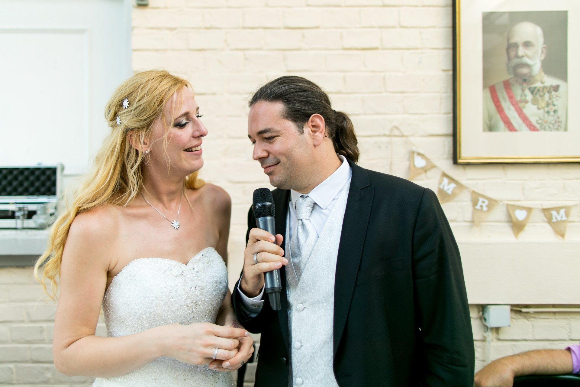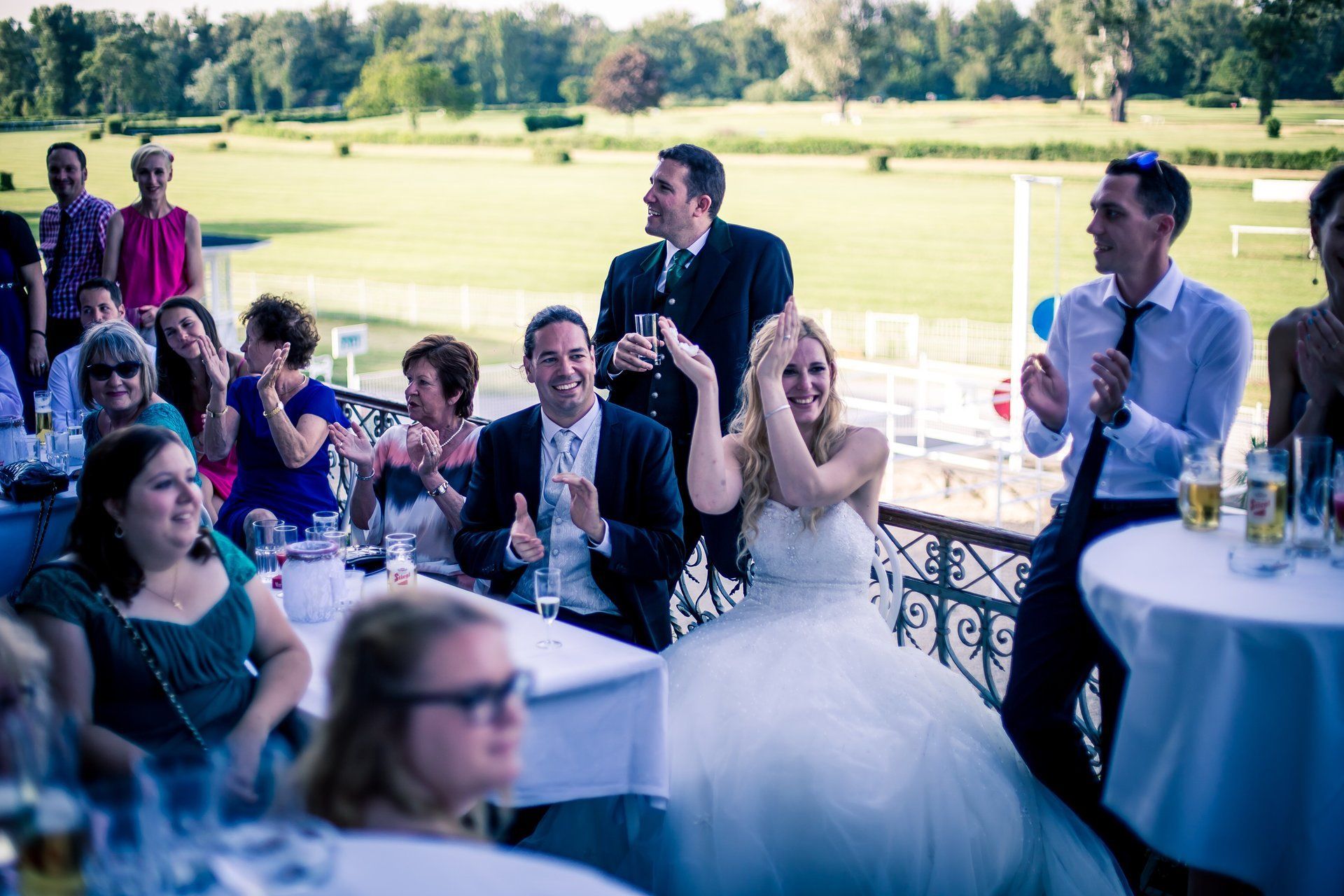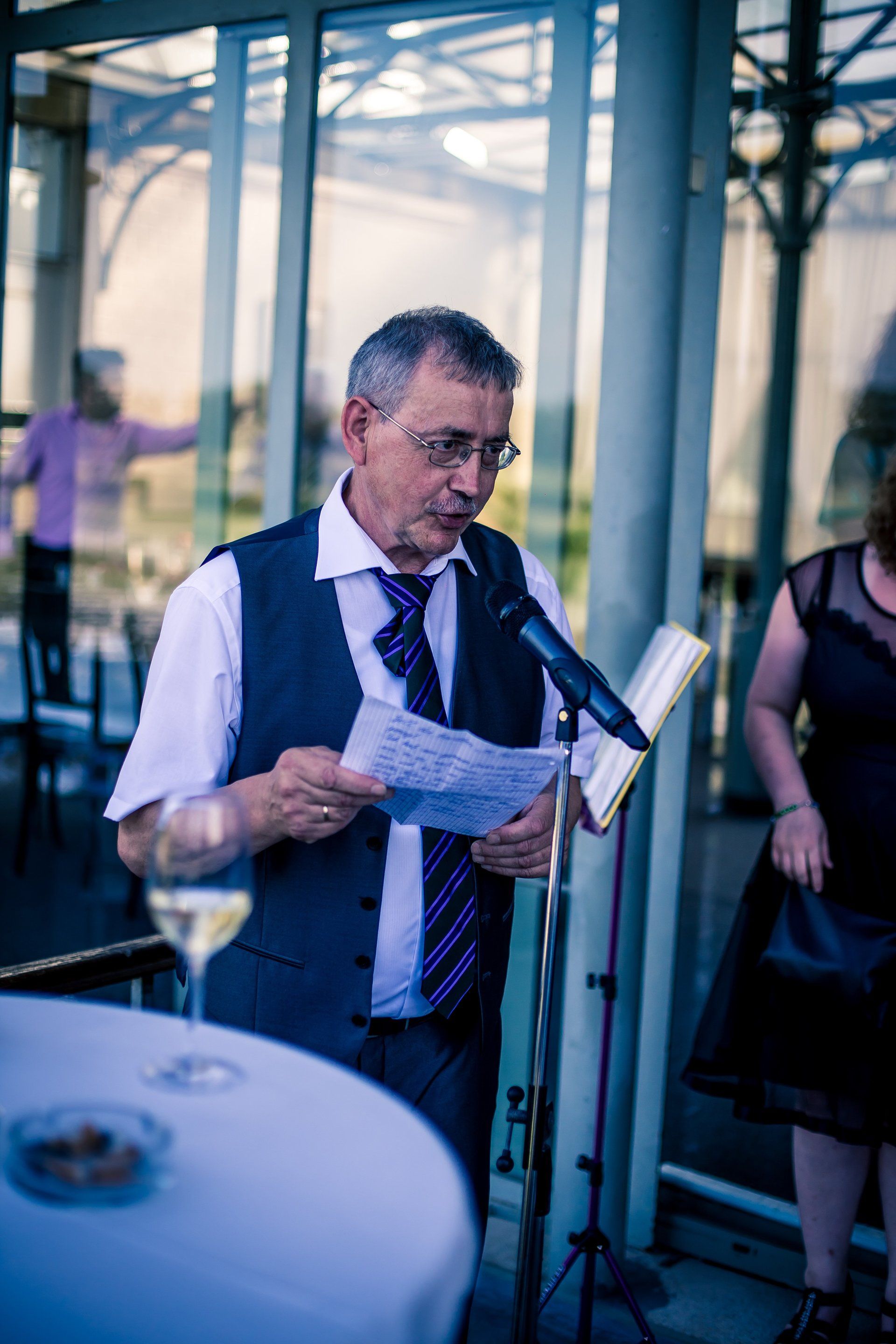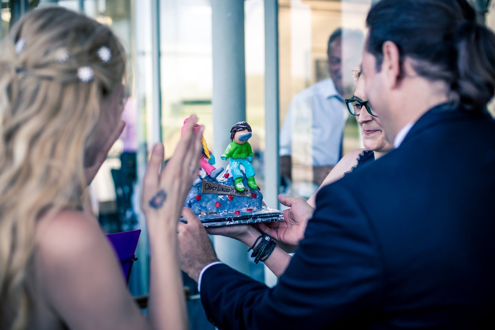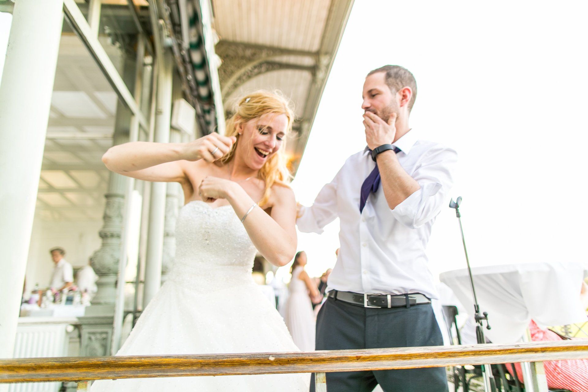 Der Empfang fand bei strahlendem Sonnenschein auf der Terrasse der Kaiserloge statt, bevor es später zum Essen nach drinnen ging. Ein großes DANKE an dieser Stelle an den Brautpapa, der eine so schöne, emotionale Rede gehalten hat und an Diana, die sich so viel Mühe gemacht hat mit Ihrer Überraschung. Frau Ukelele, Du bist der Knaller! Ohne Dich gäbe es uns nicht.