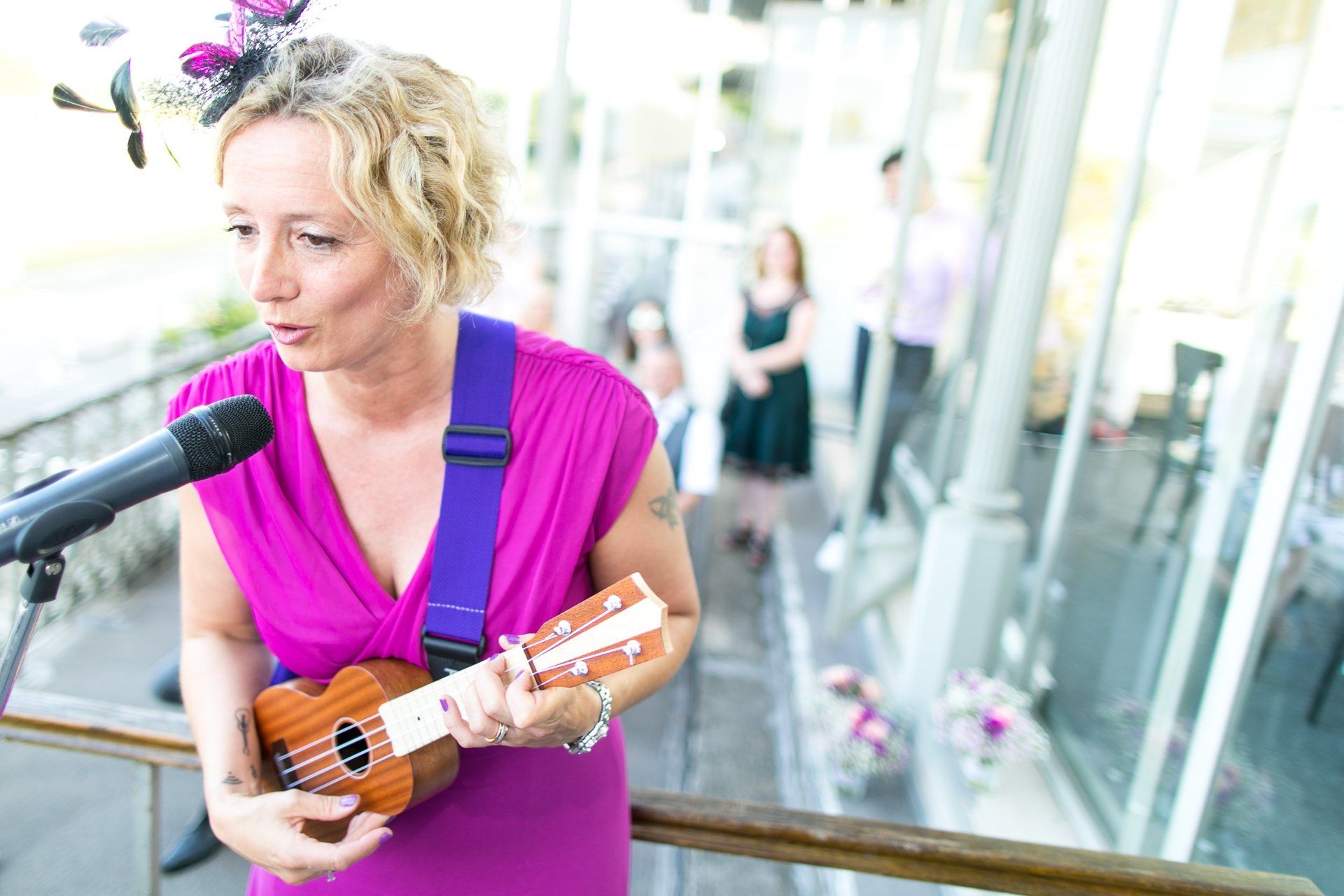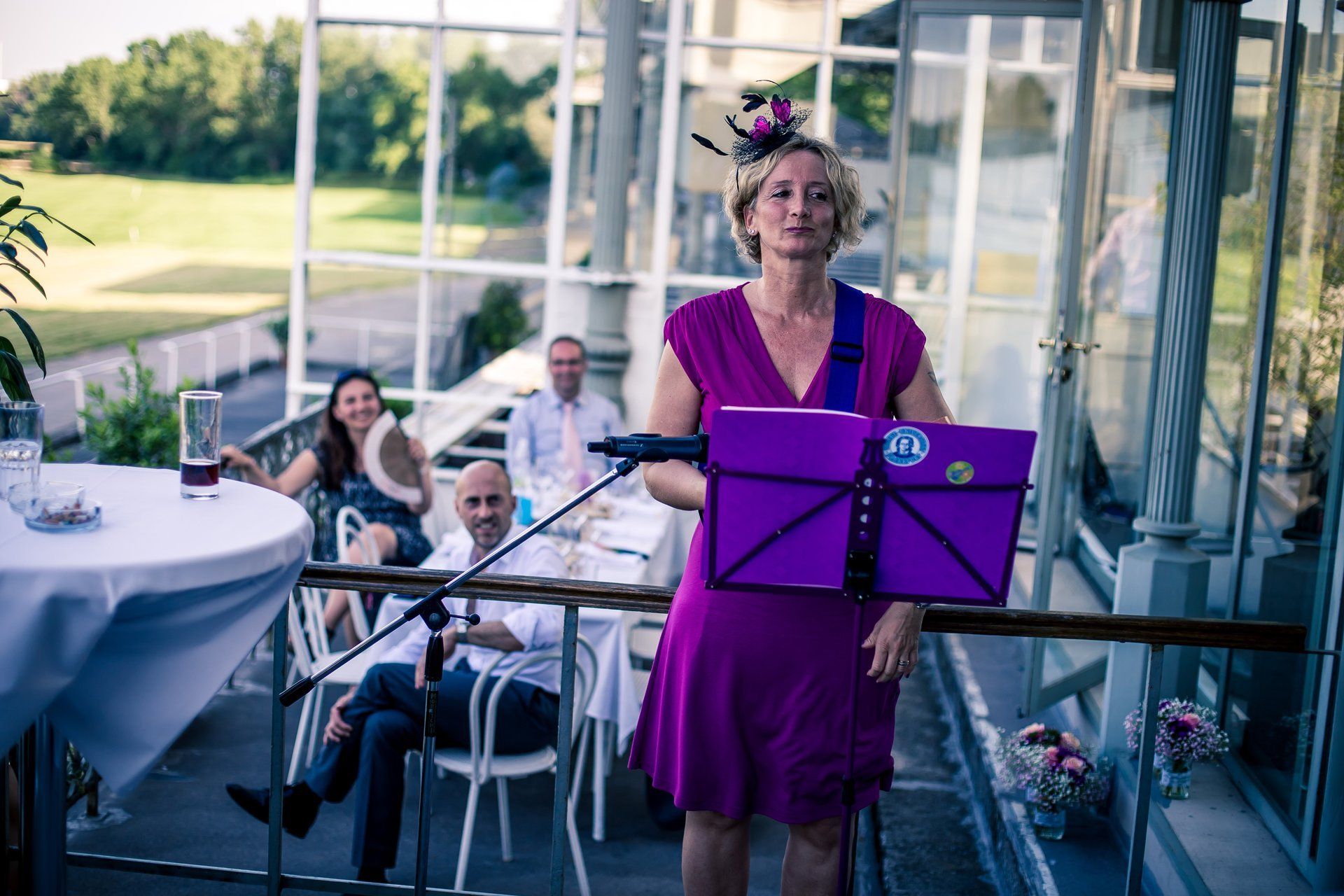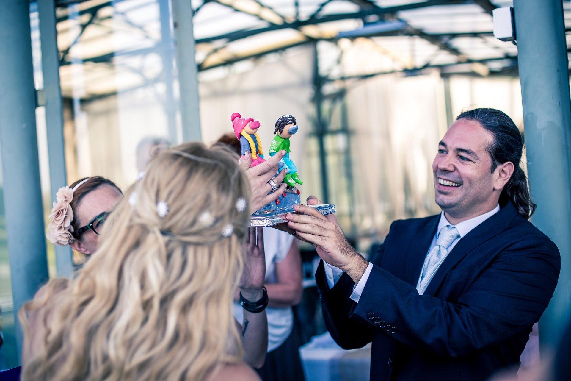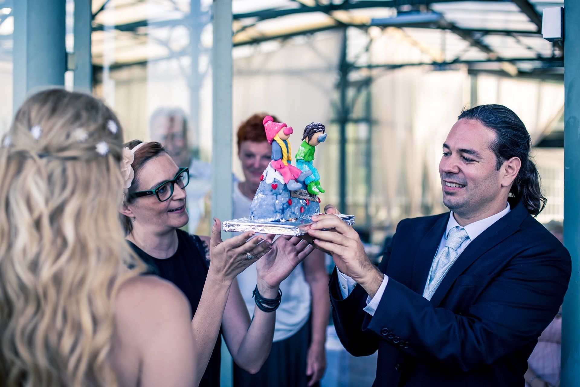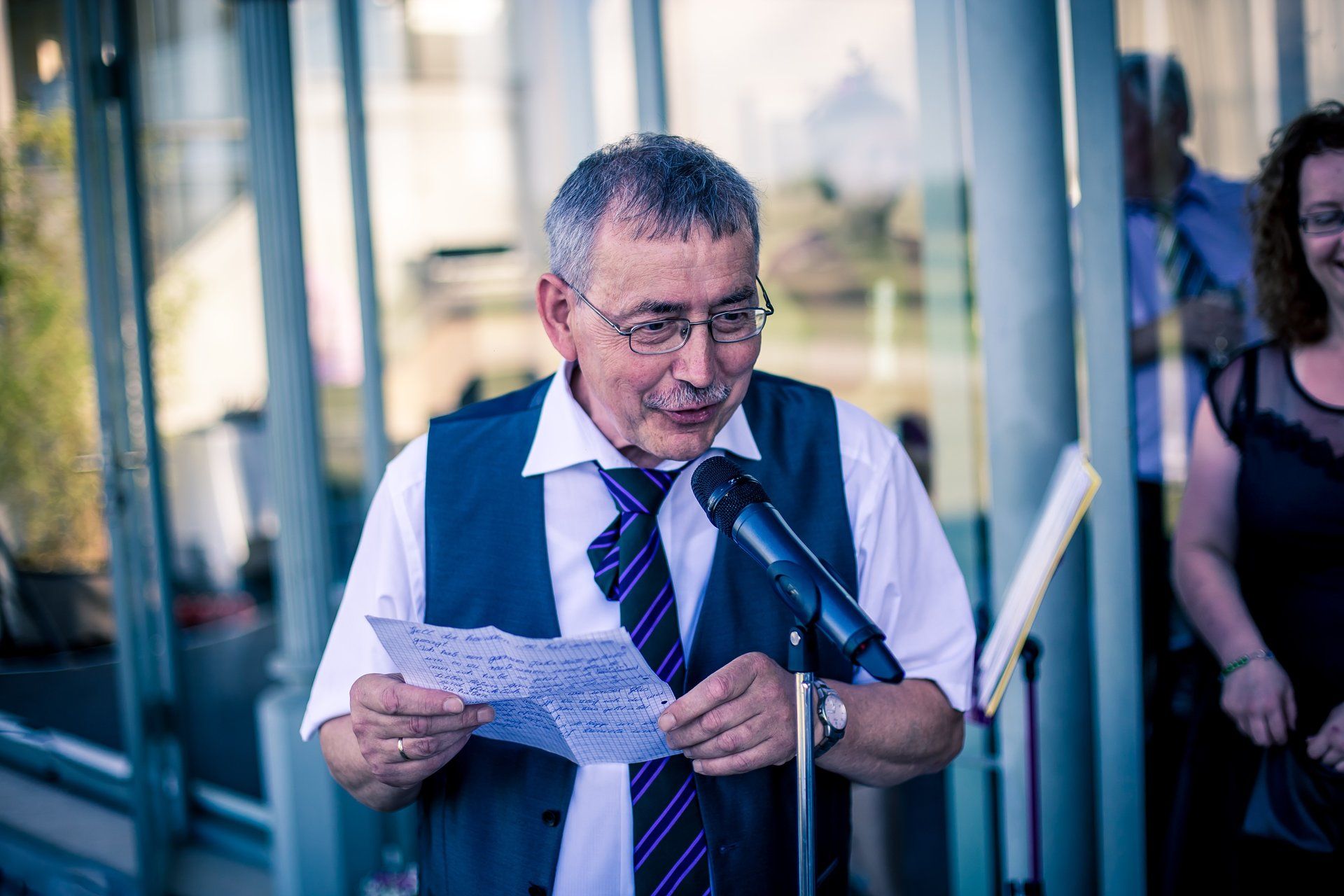 Der Empfang fand bei strahlendem Sonnenschein auf der Terrasse der Kaiserloge statt, bevor es später zum Essen nach drinnen ging. Ein großes DANKE an dieser Stelle an den Brautpapa, der eine so schöne, emotionale Rede gehalten hat und an Diana, die sich so viel Mühe gemacht hat mit Ihrer Überraschung. Frau Ukelele, Du bist der Knaller! Ohne Dich gäbe es uns nicht.