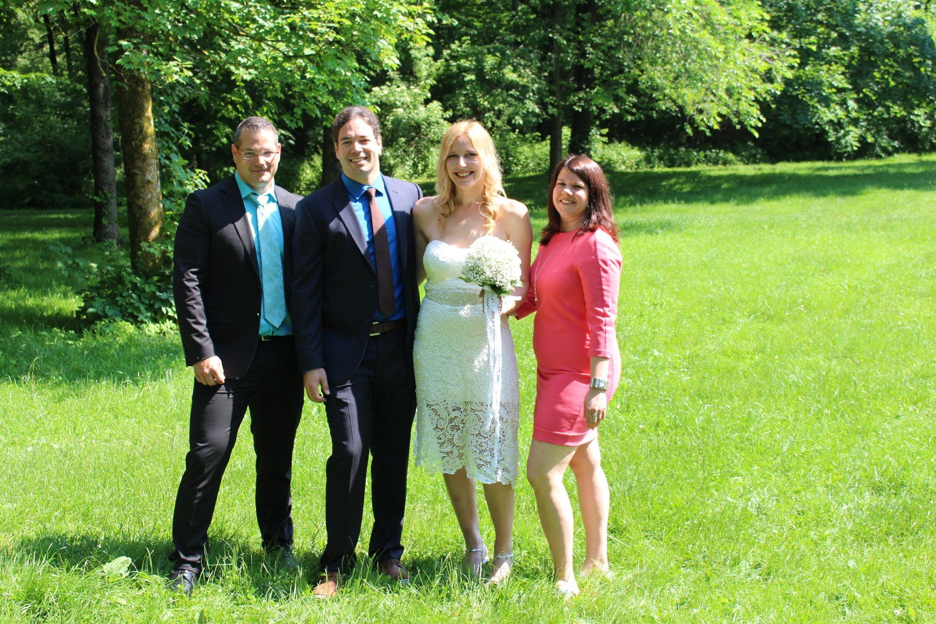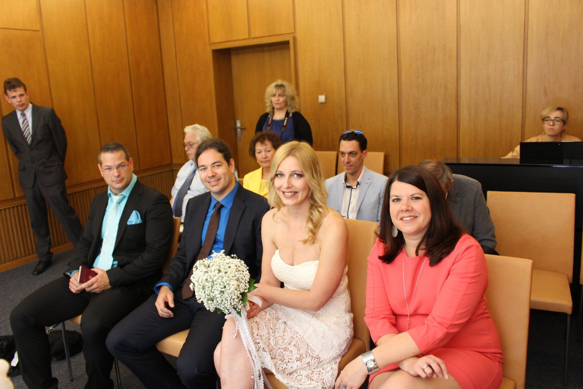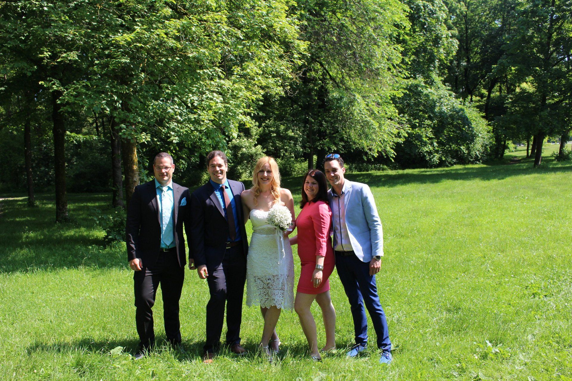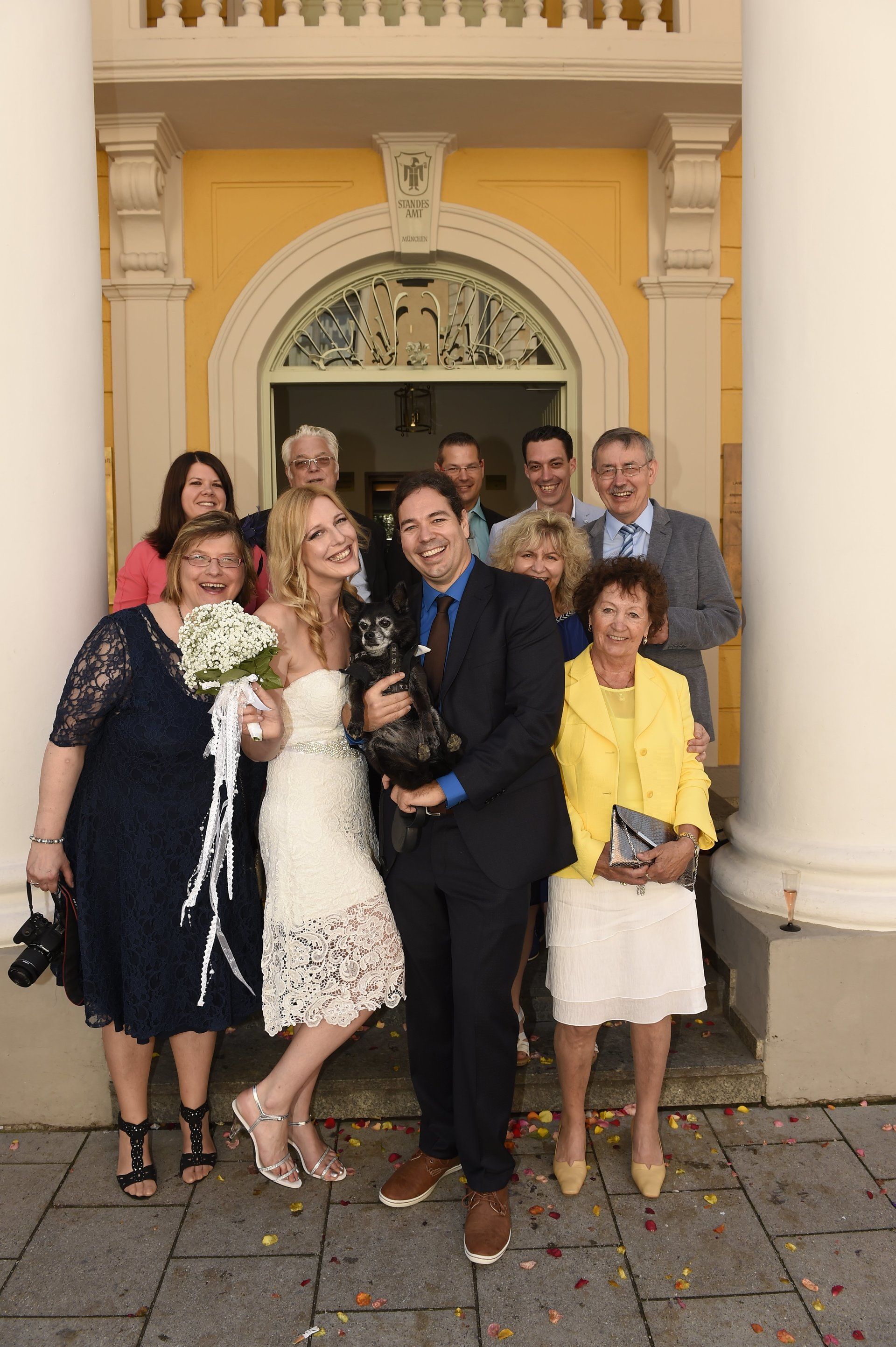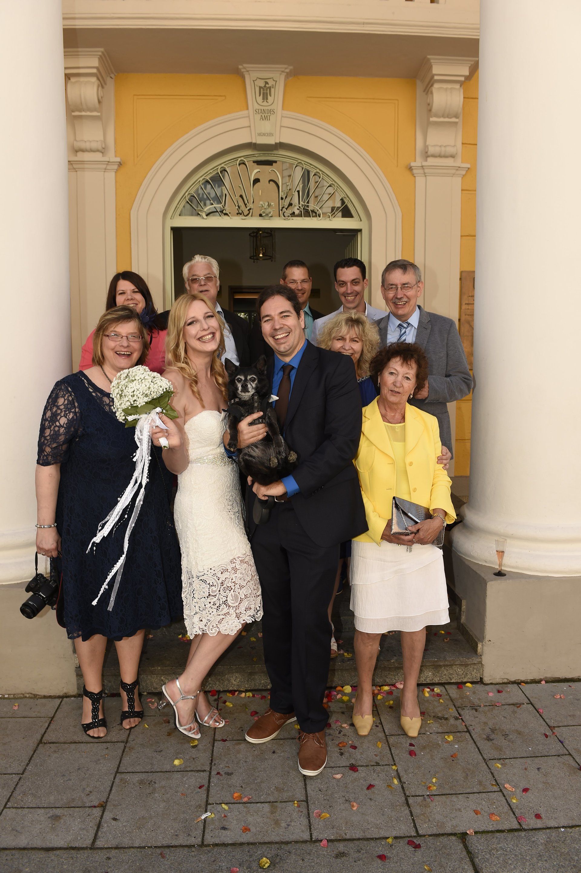 Unsere standesamtliche Trauung war sehr schön... Nur wir zwei, unser Hundekind Coco, unsere Trauzeugen und die Familie waren dabei. Wir hatten einen fabelhaften Tag mit strahlenden Sonnenschein am 06.06.16. Nach der Trauung sind wir in den englischen Garten spaziert,bei herrlichem Sonnenschein. Natürlich gab es Champagner zum Antsossen. Gefeiert haben wir dann in einem hübschen, kleinen Biergarten.