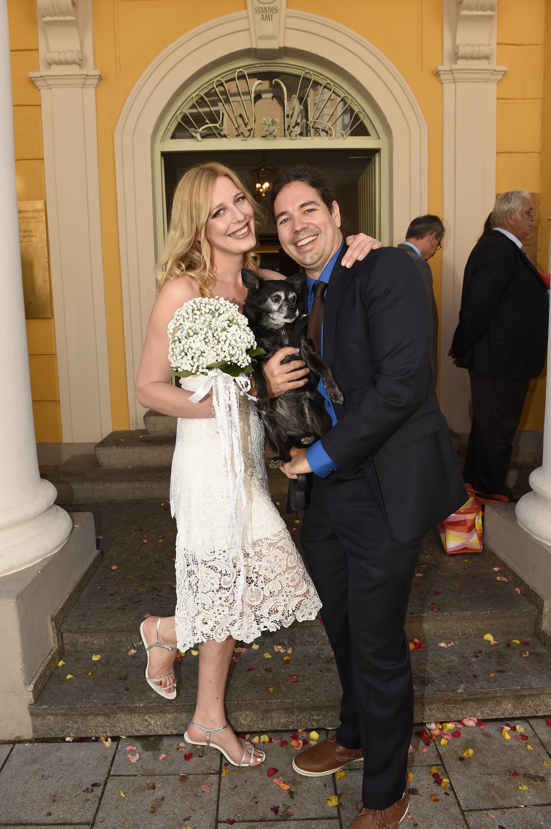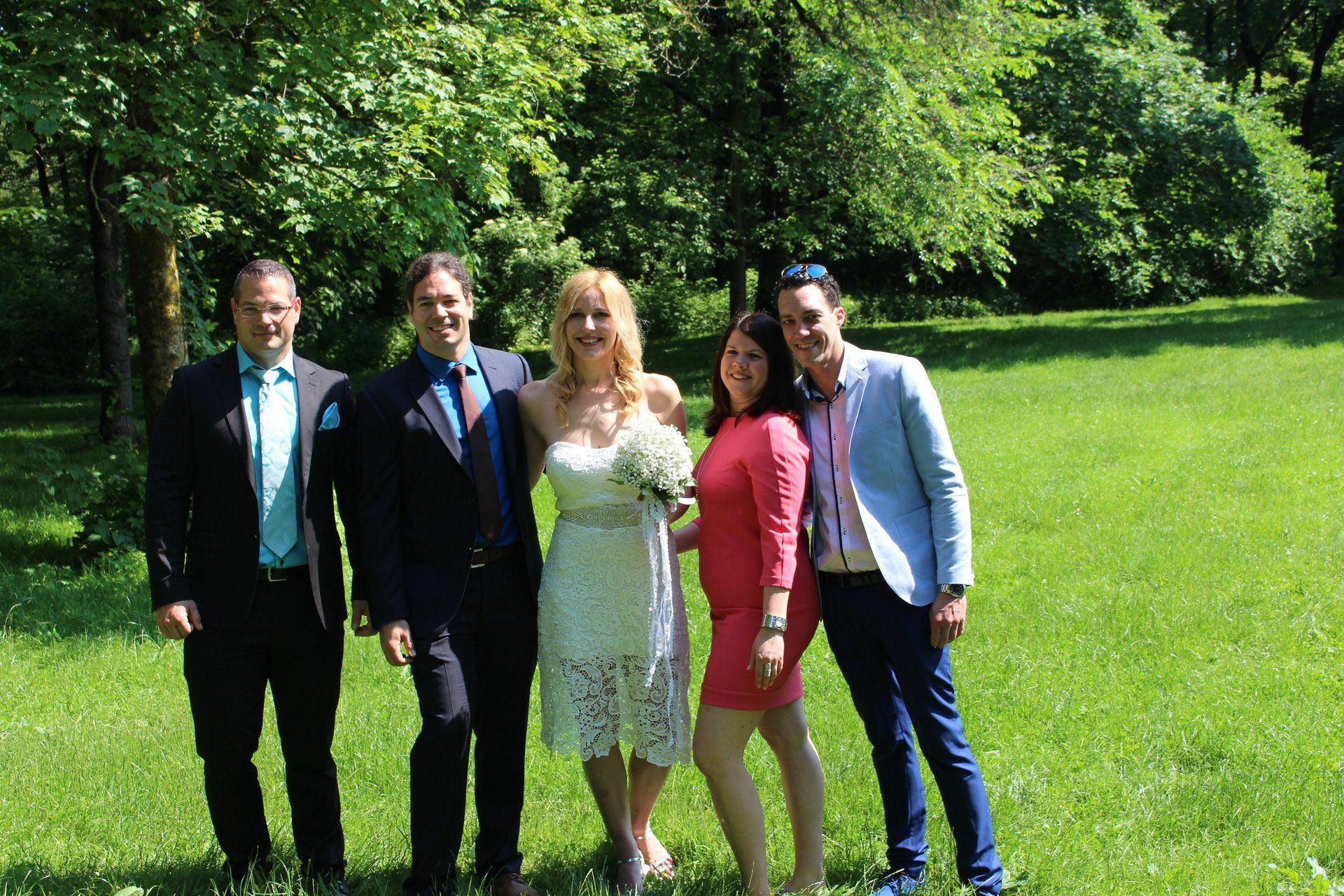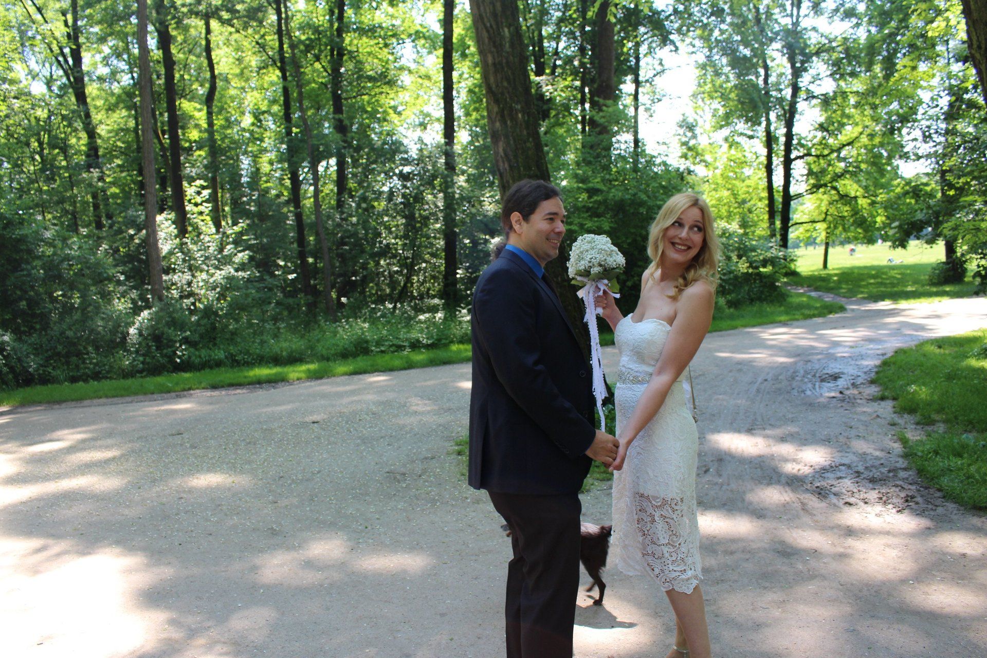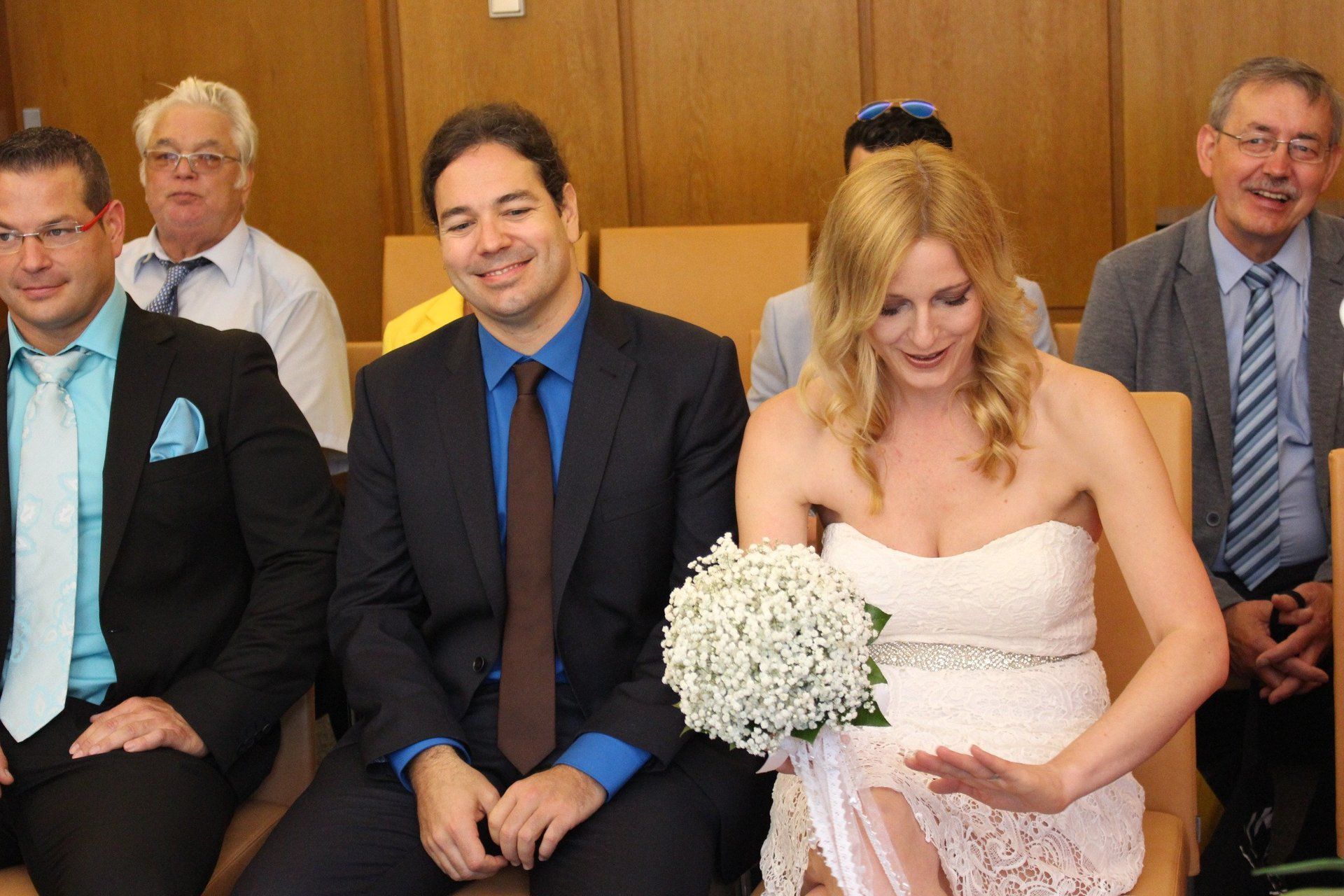 Unsere standesamtliche Trauung war sehr schön... Nur wir zwei, unser Hundekind Coco, unsere Trauzeugen und die Familie waren dabei. Wir hatten einen fabelhaften Tag mit strahlenden Sonnenschein am 06.06.16. Nach der Trauung sind wir in den englischen Garten spaziert,bei herrlichem Sonnenschein. Natürlich gab es Champagner zum Antsossen. Gefeiert haben wir dann in einem hübschen, kleinen Biergarten.