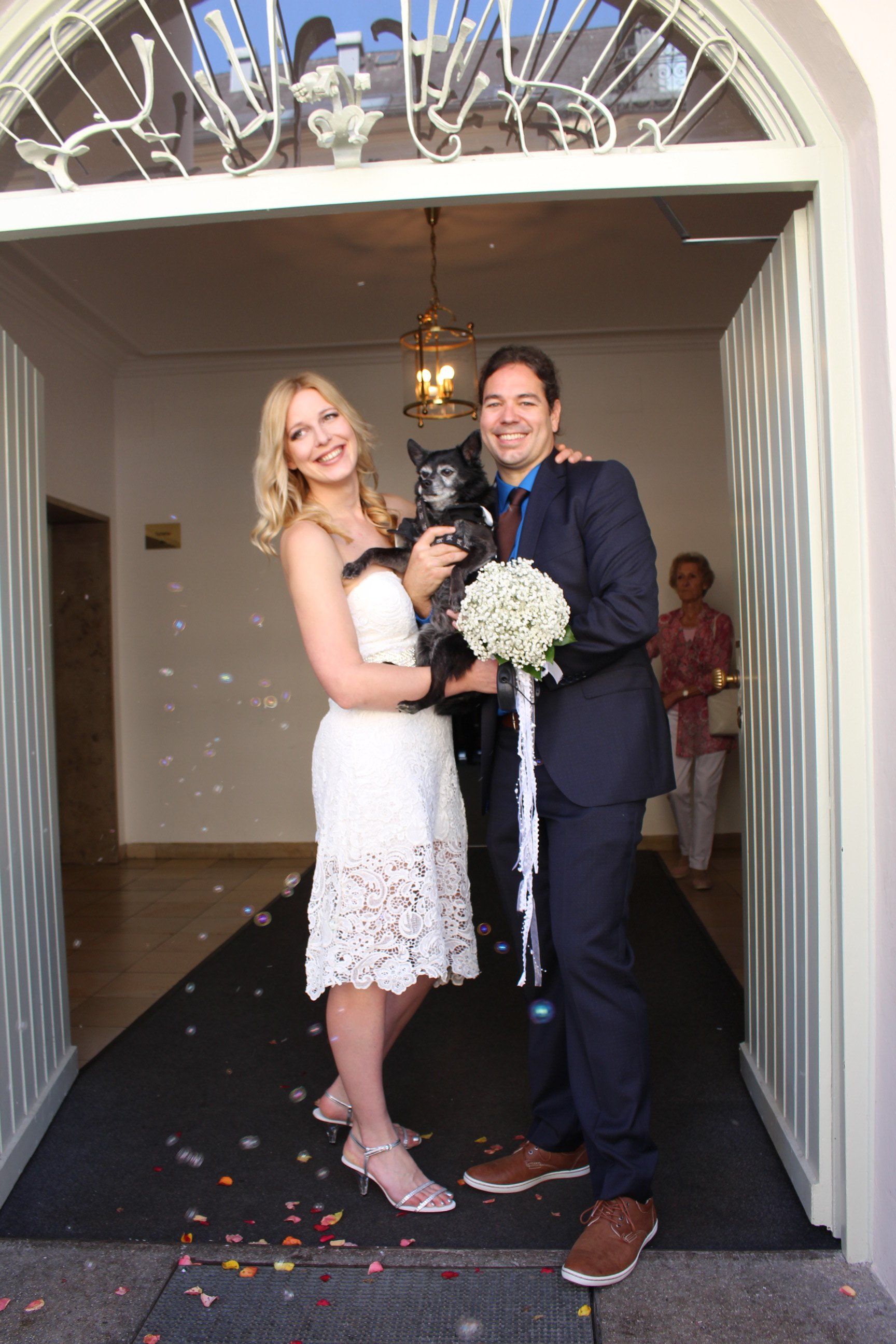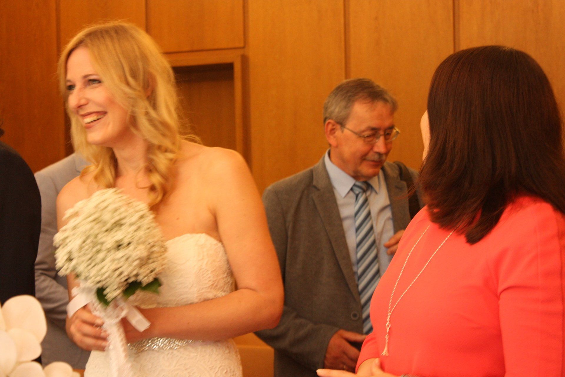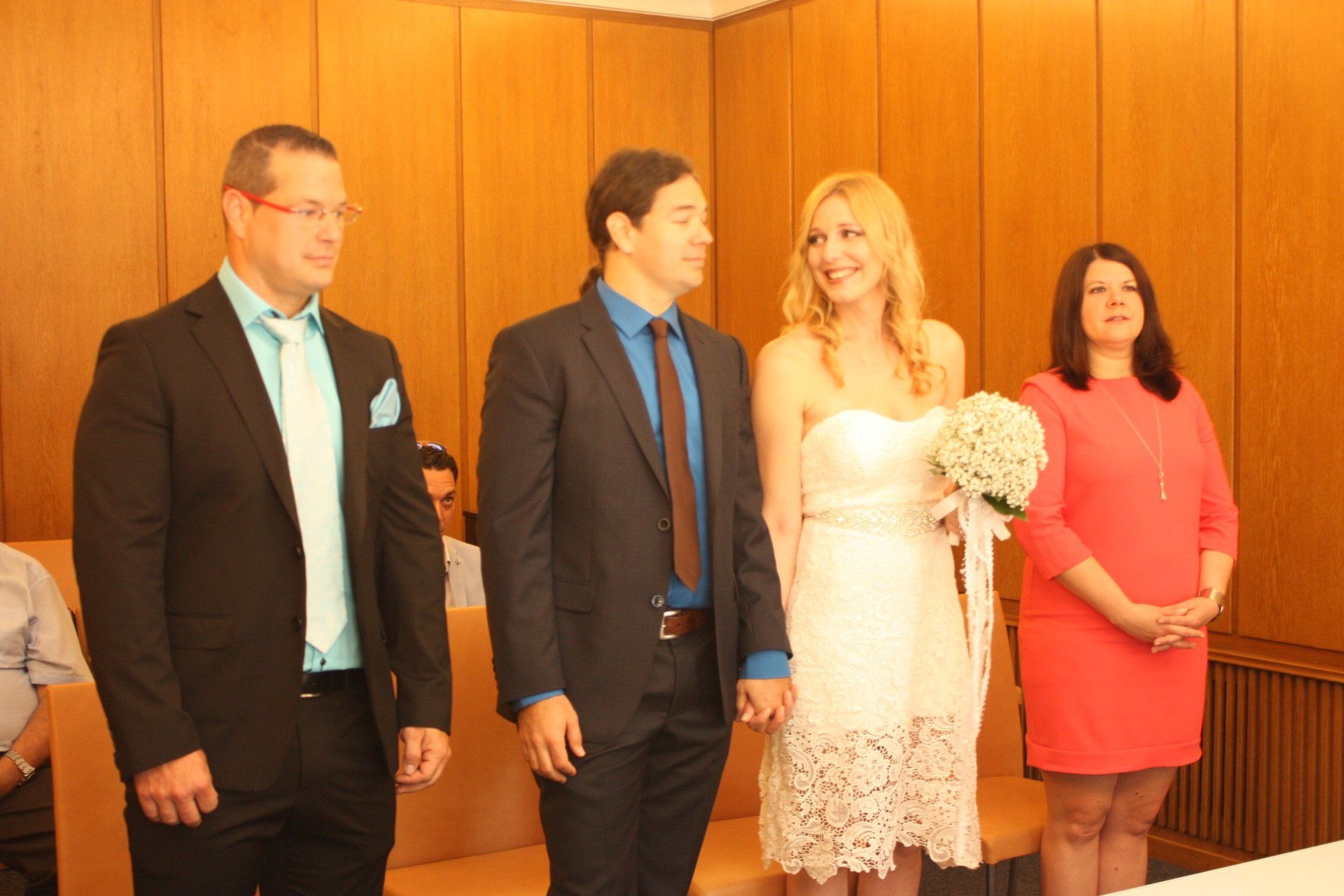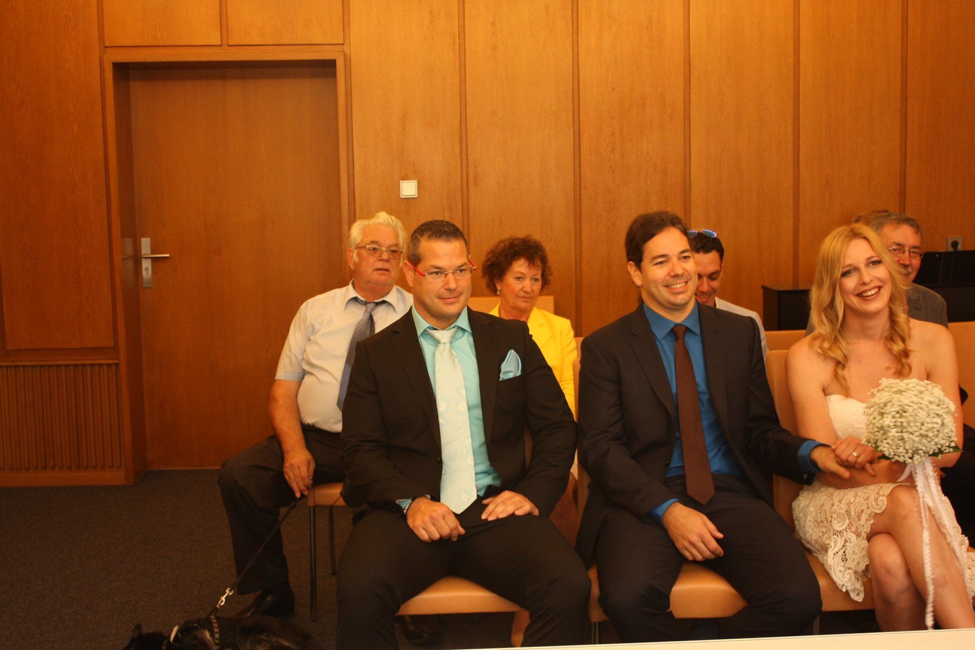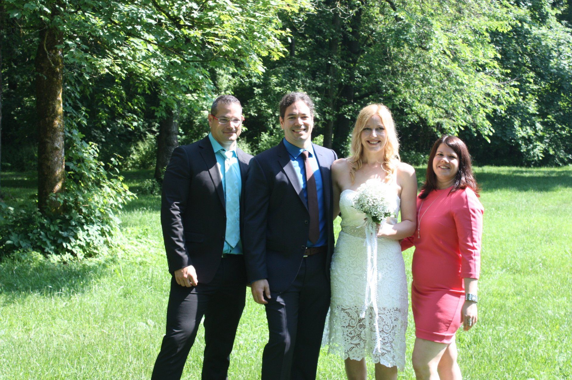 Unsere standesamtliche Trauung war sehr schön... Nur wir zwei, unser Hundekind Coco, unsere Trauzeugen und die Familie waren dabei. Wir hatten einen fabelhaften Tag mit strahlenden Sonnenschein am 06.06.16. Nach der Trauung sind wir in den englischen Garten spaziert,bei herrlichem Sonnenschein. Natürlich gab es Champagner zum Antsossen. Gefeiert haben wir dann in einem hübschen, kleinen Biergarten.