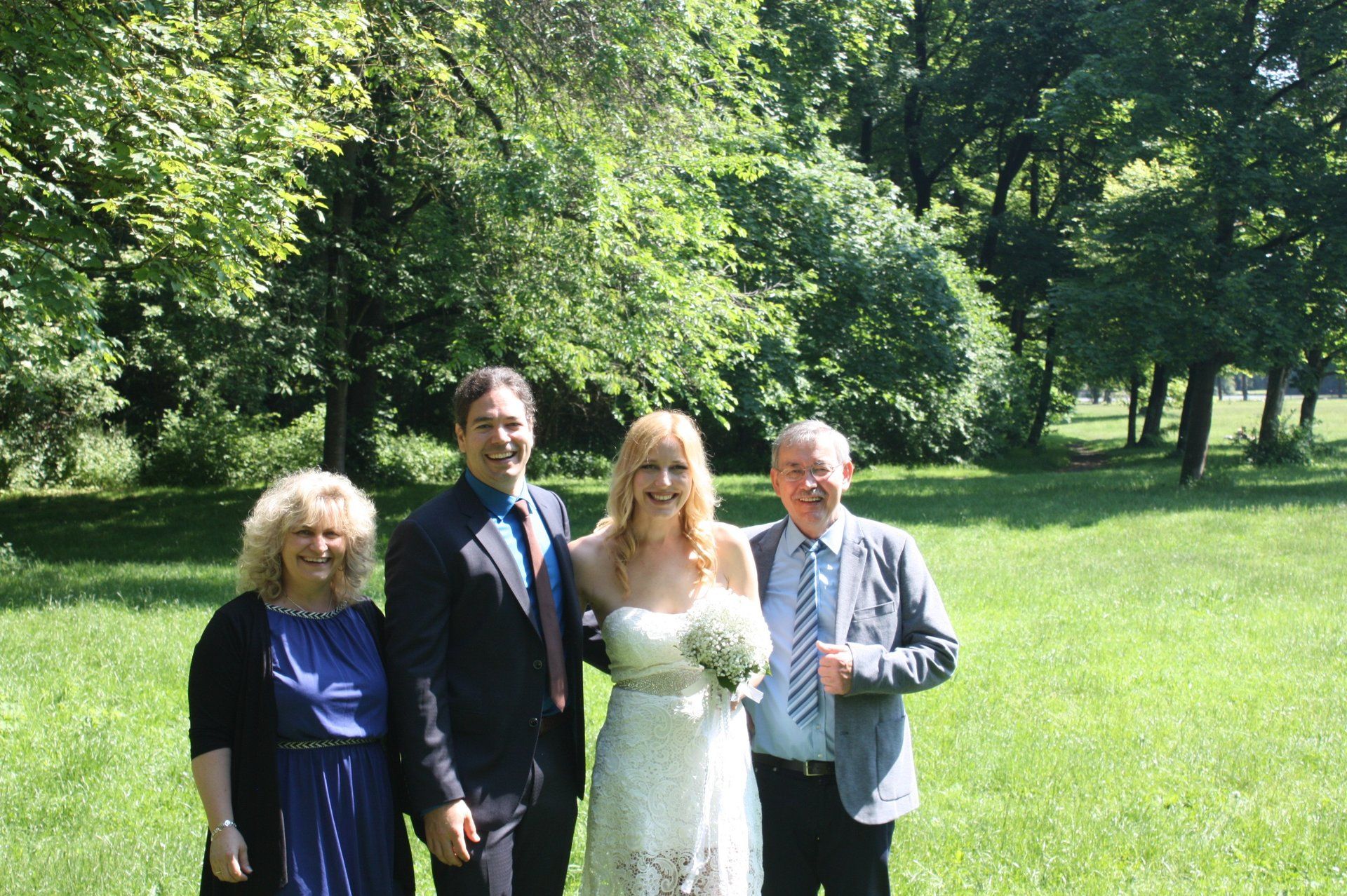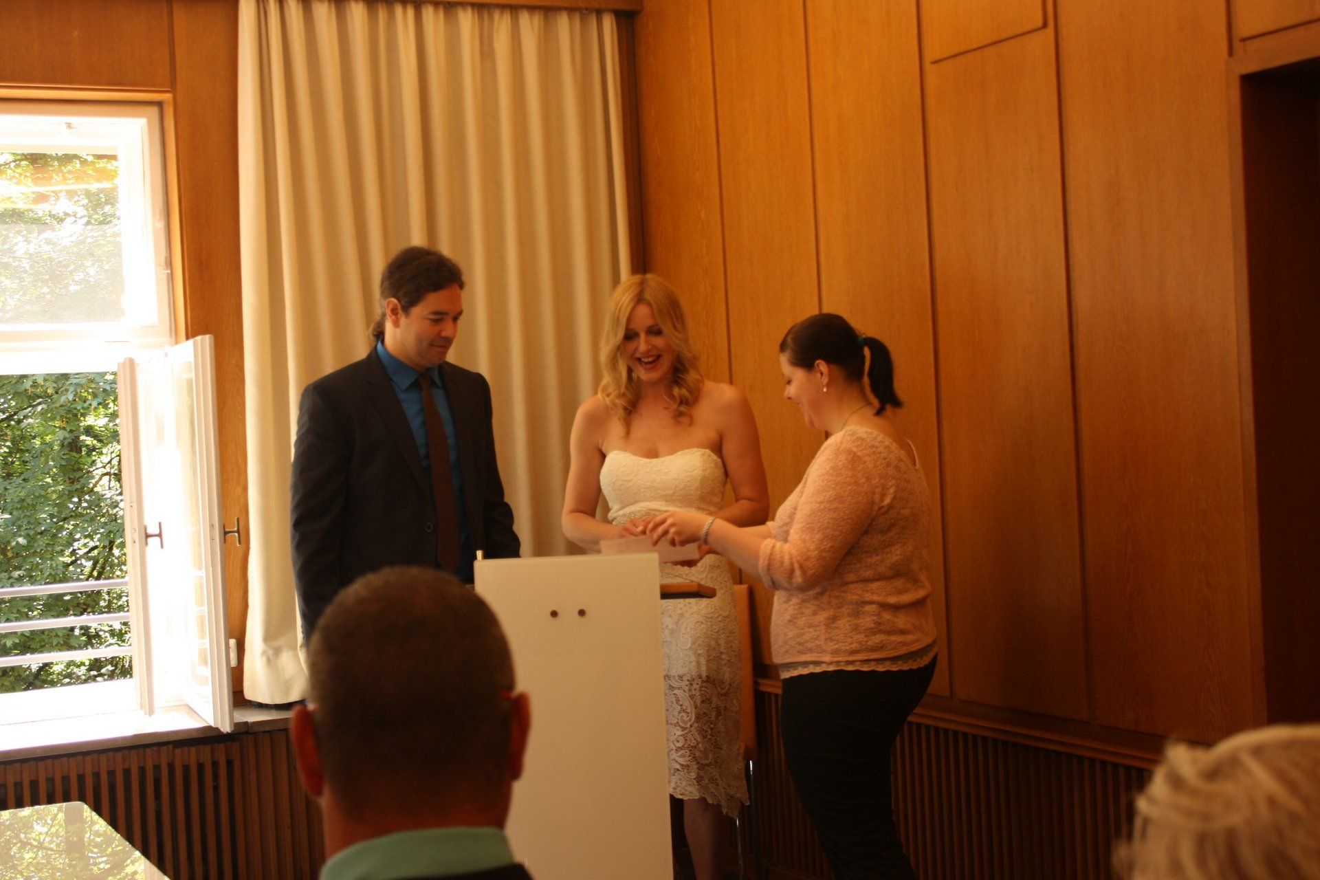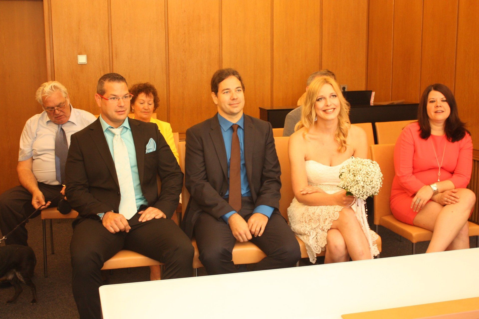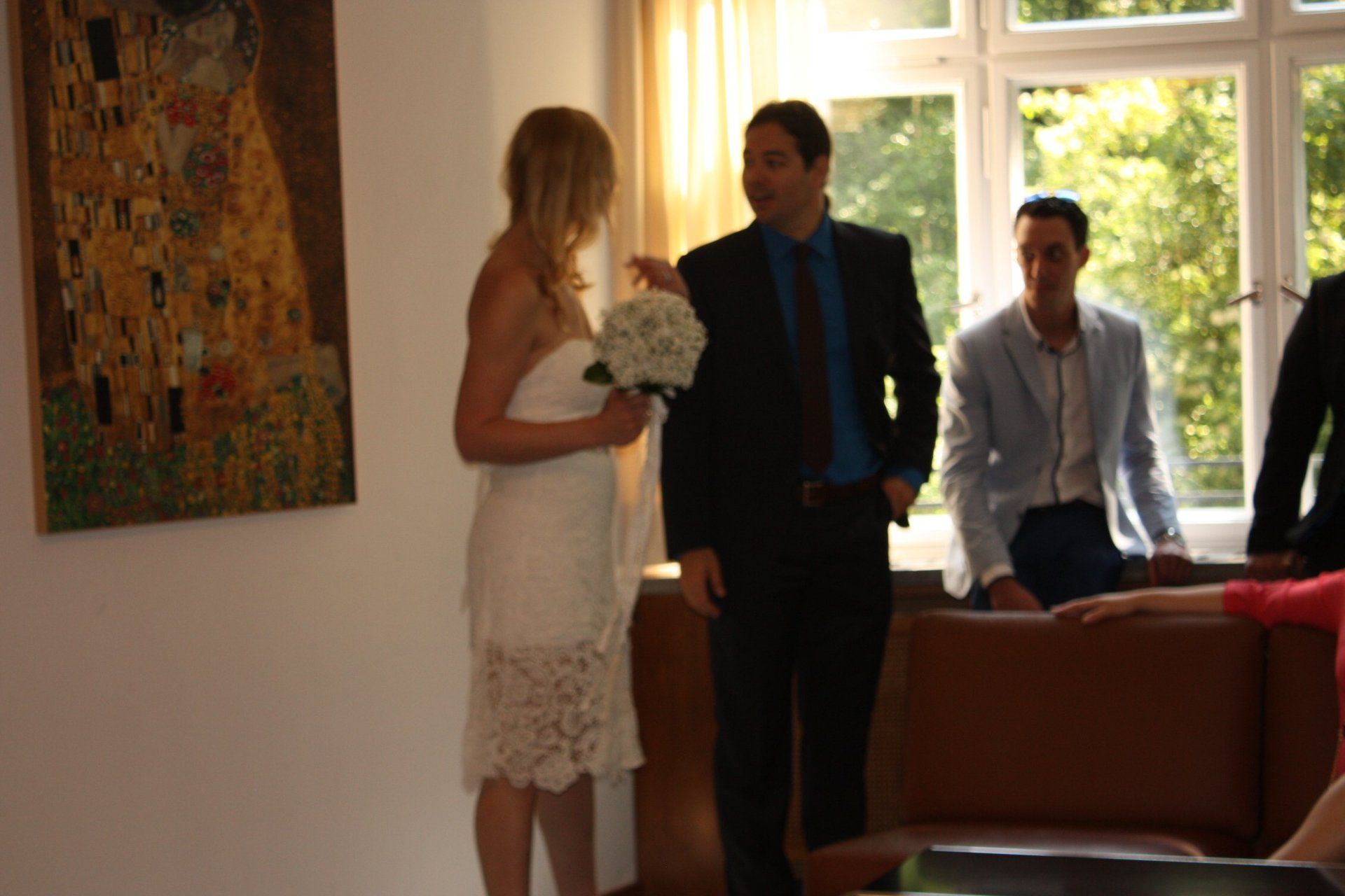 Unsere standesamtliche Trauung war sehr schön... Nur wir zwei, unser Hundekind Coco, unsere Trauzeugen und die Familie waren dabei. Wir hatten einen fabelhaften Tag mit strahlenden Sonnenschein am 06.06.16. Nach der Trauung sind wir in den englischen Garten spaziert,bei herrlichem Sonnenschein. Natürlich gab es Champagner zum Antsossen. Gefeiert haben wir dann in einem hübschen, kleinen Biergarten.