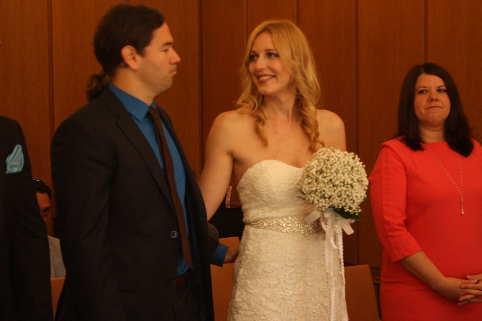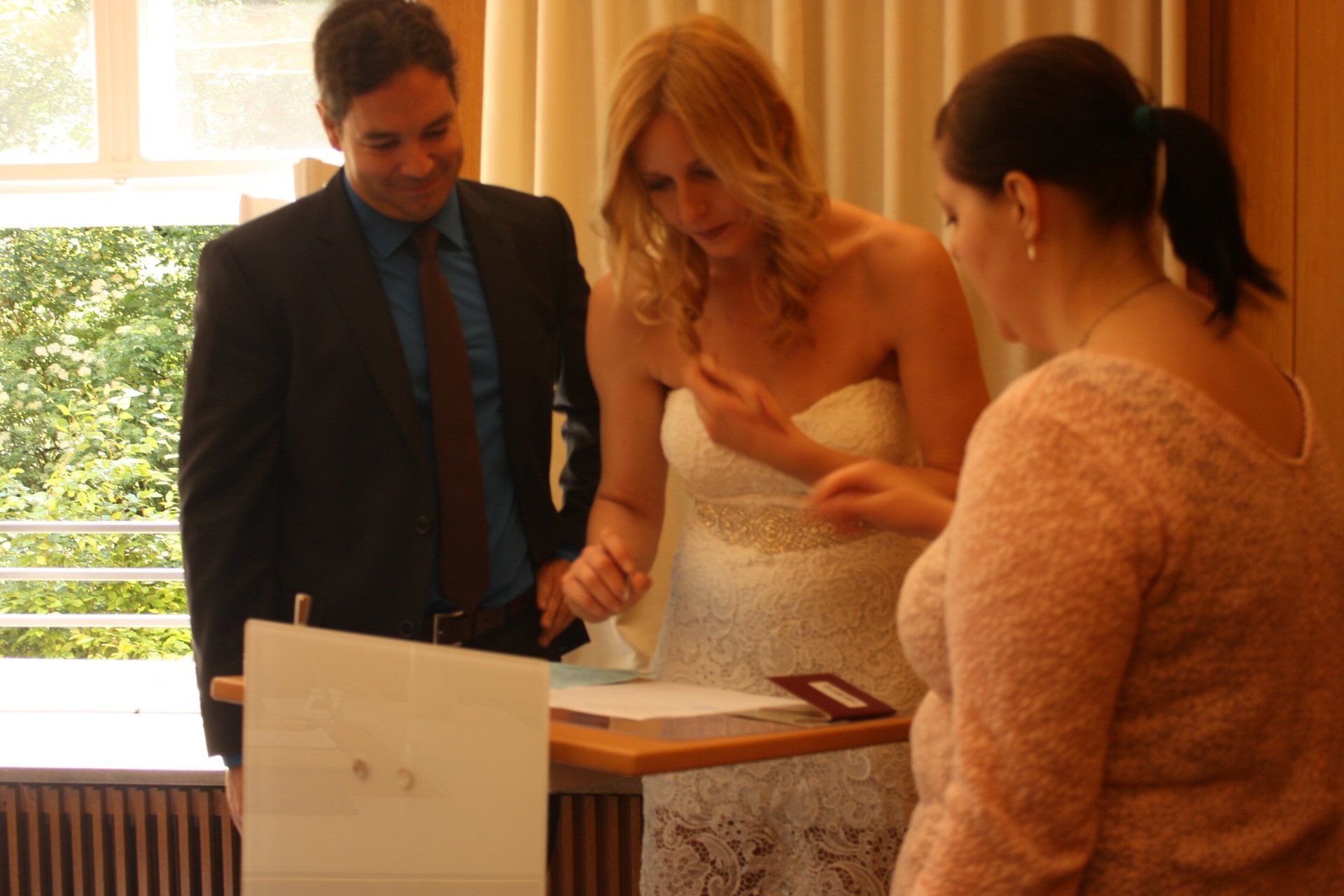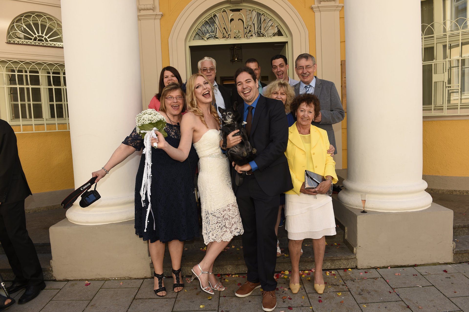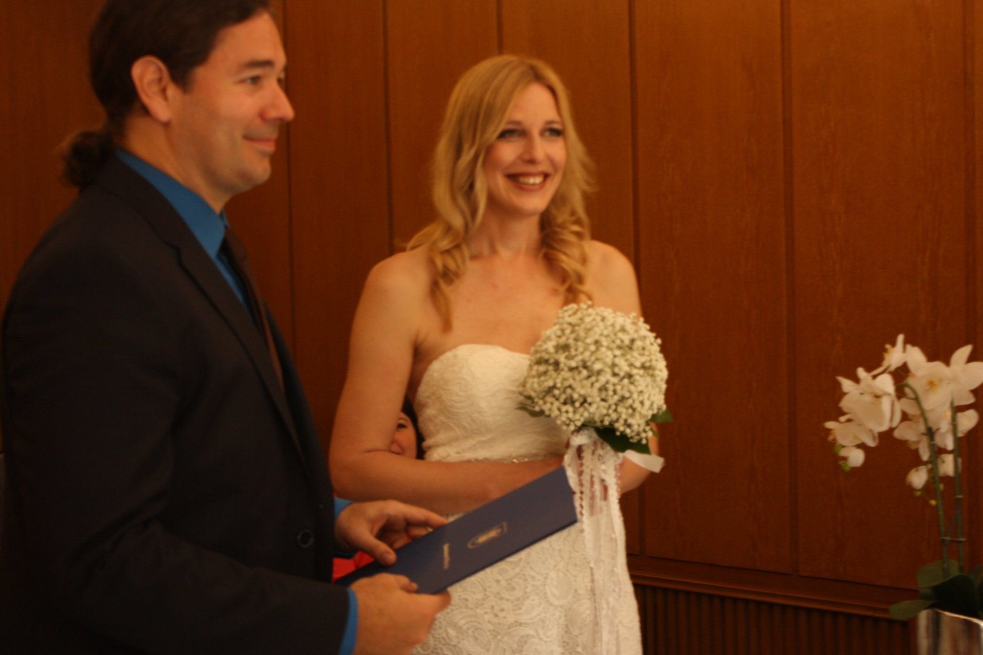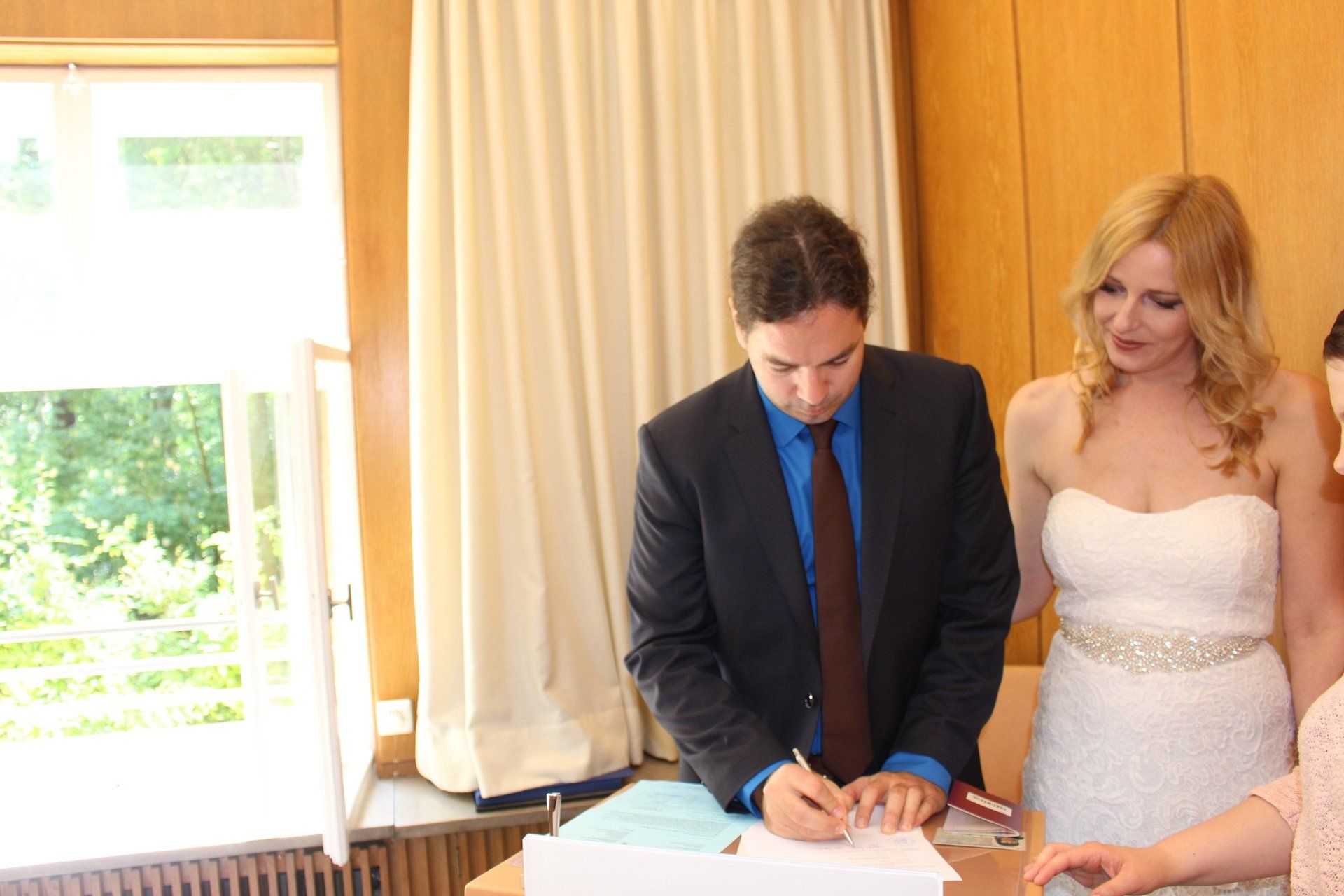 Unsere standesamtliche Trauung war sehr schön... Nur wir zwei, unser Hundekind Coco, unsere Trauzeugen und die Familie waren dabei. Wir hatten einen fabelhaften Tag mit strahlenden Sonnenschein am 06.06.16. Nach der Trauung sind wir in den englischen Garten spaziert,bei herrlichem Sonnenschein. Natürlich gab es Champagner zum Antsossen. Gefeiert haben wir dann in einem hübschen, kleinen Biergarten.
