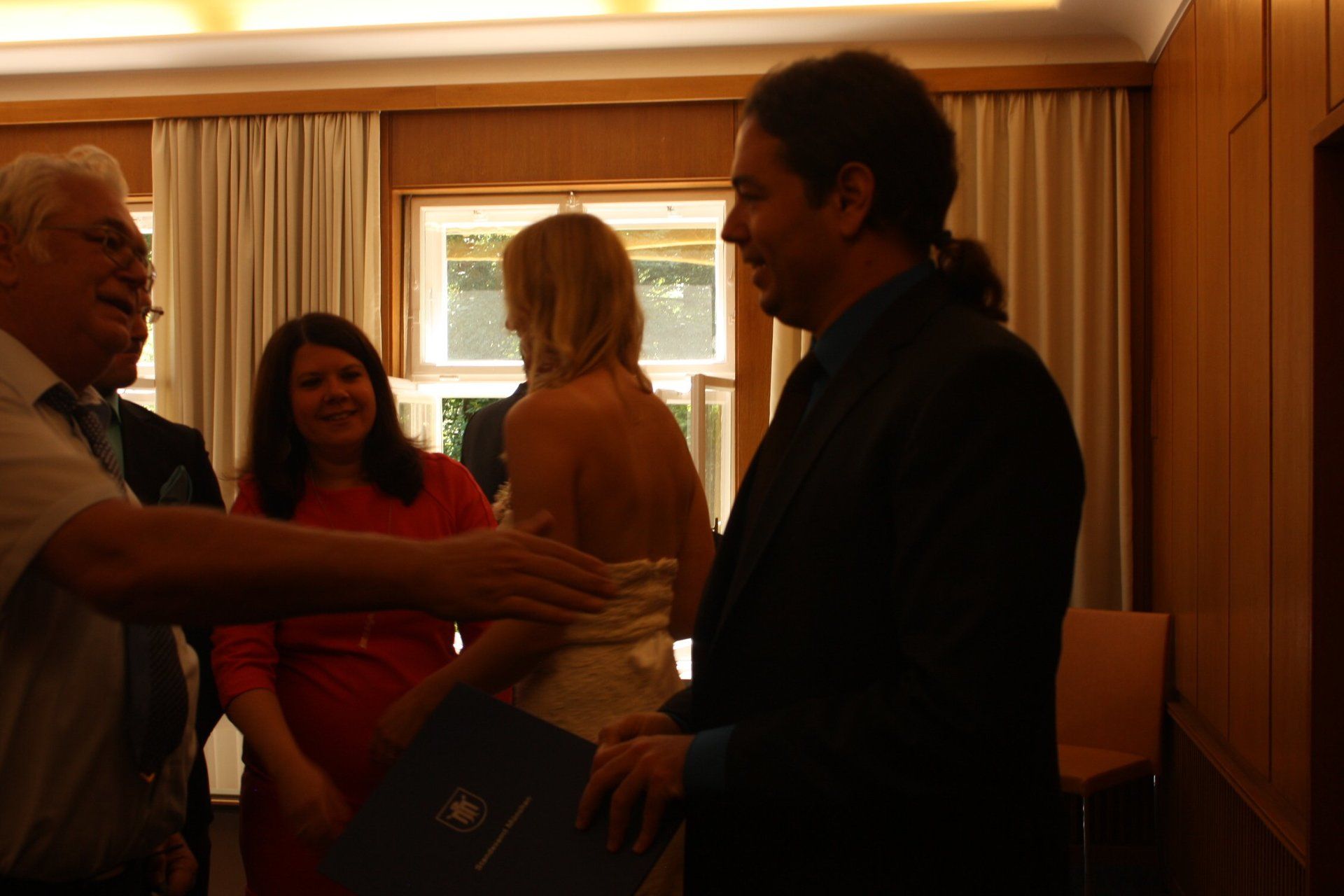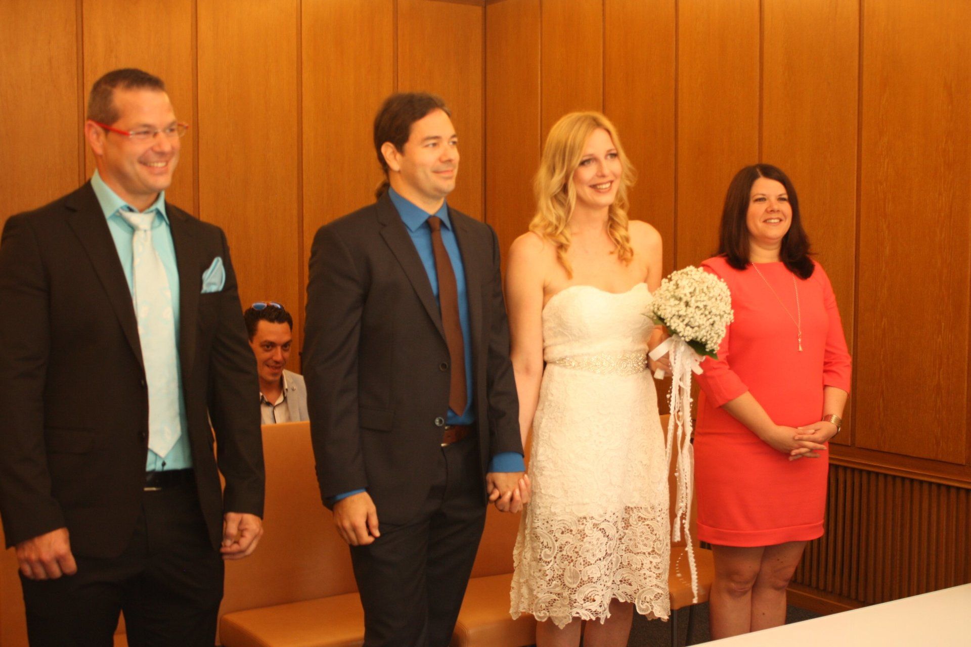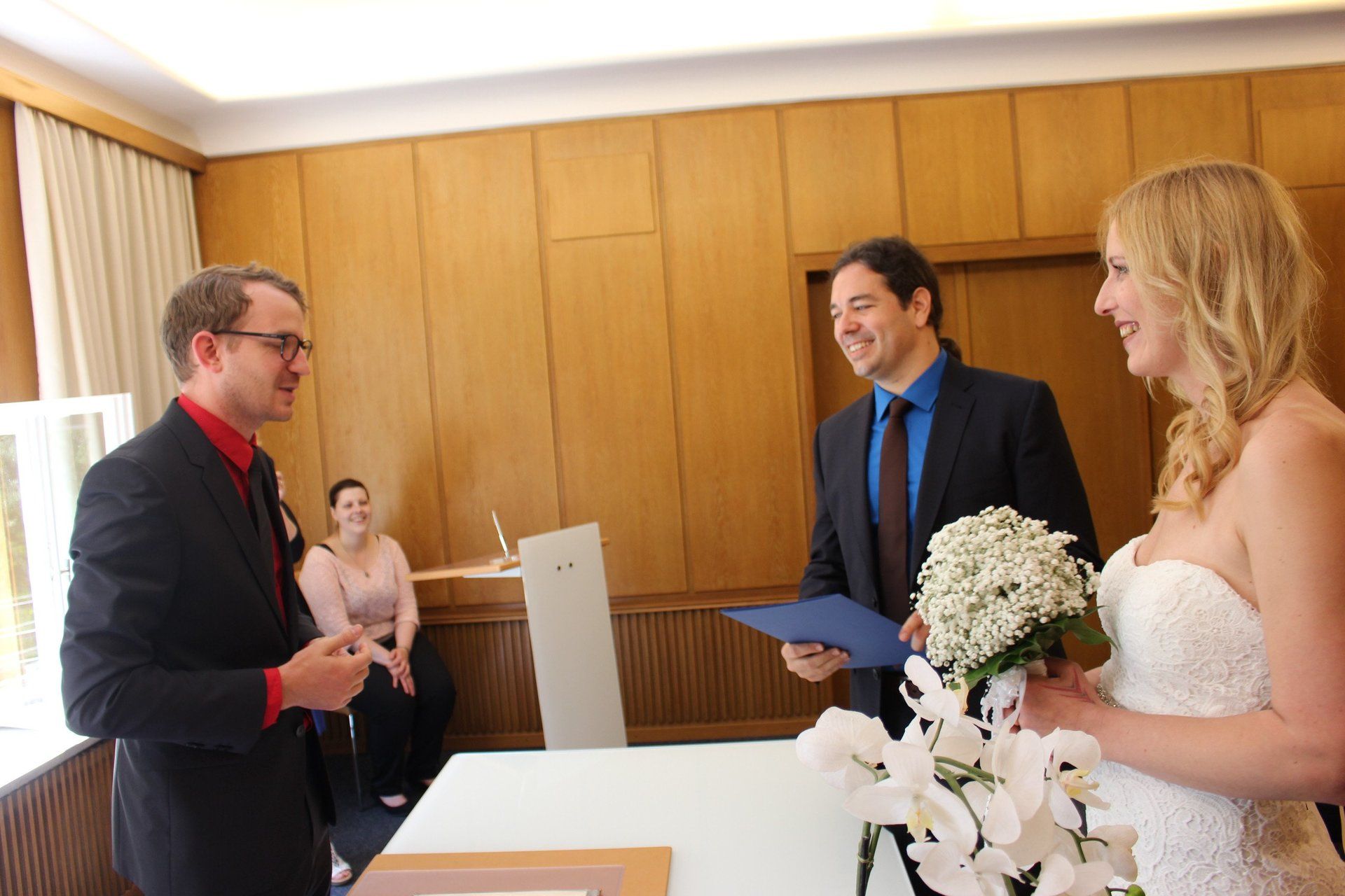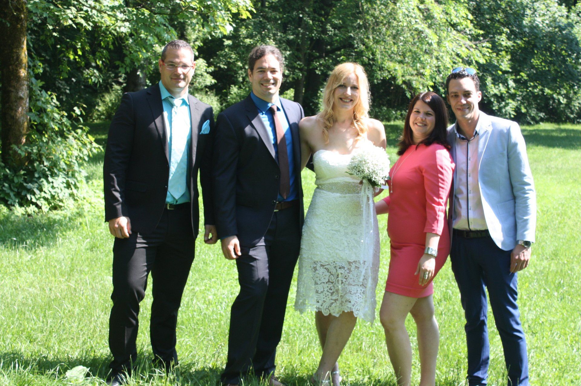 Unsere standesamtliche Trauung war sehr schön... Nur wir zwei, unser Hundekind Coco, unsere Trauzeugen und die Familie waren dabei. Wir hatten einen fabelhaften Tag mit strahlenden Sonnenschein am 06.06.16. Nach der Trauung sind wir in den englischen Garten spaziert,bei herrlichem Sonnenschein. Natürlich gab es Champagner zum Antsossen. Gefeiert haben wir dann in einem hübschen, kleinen Biergarten.
