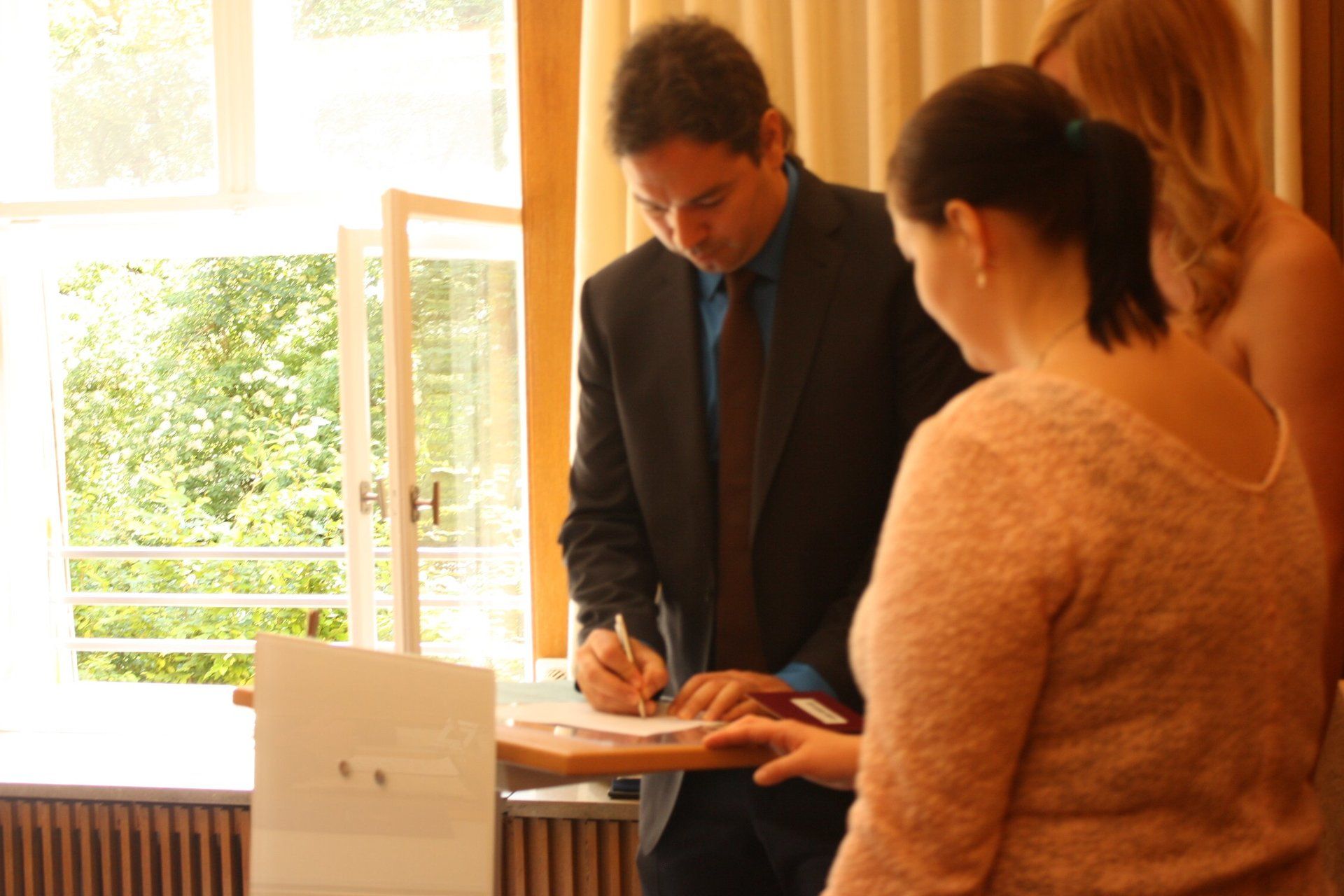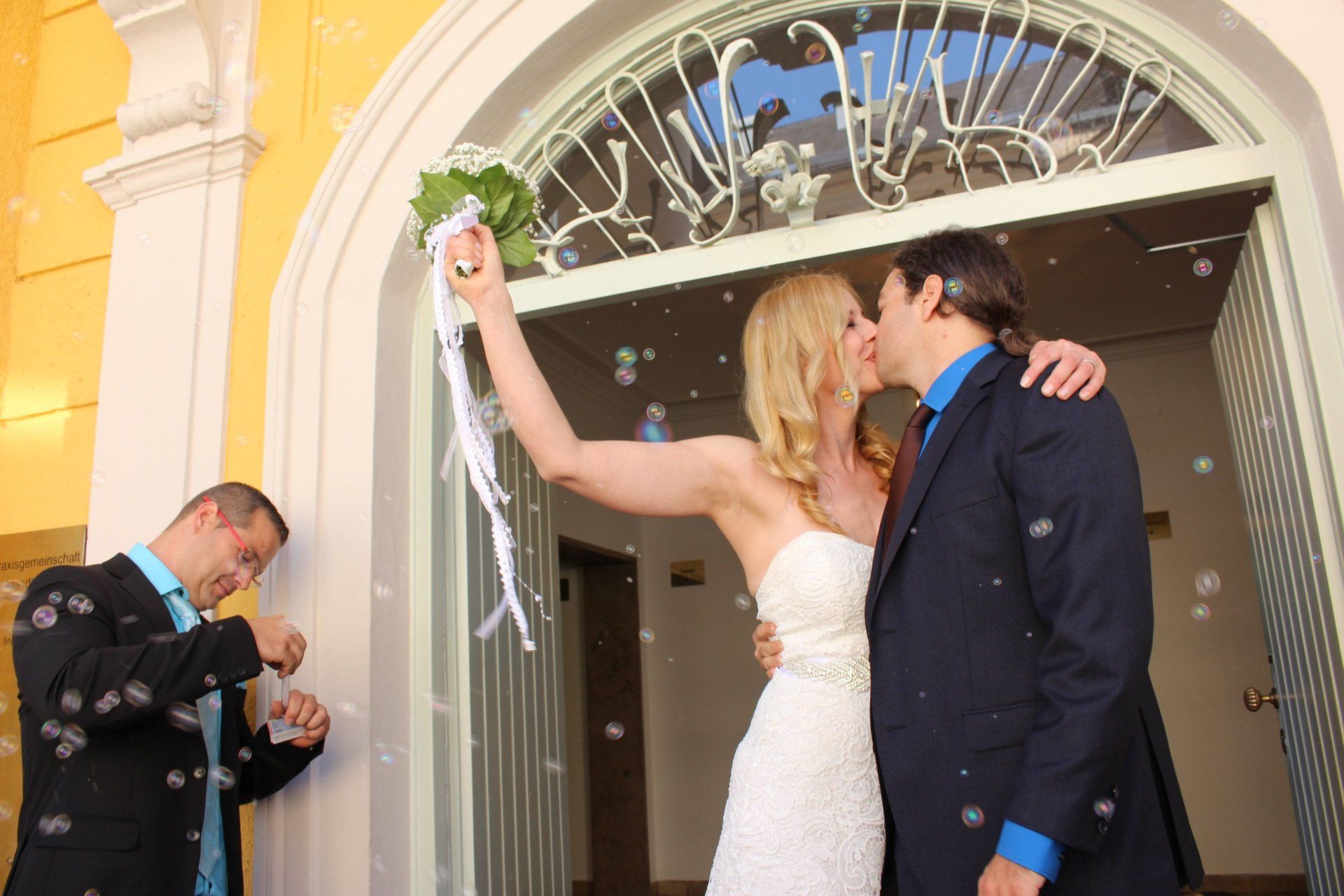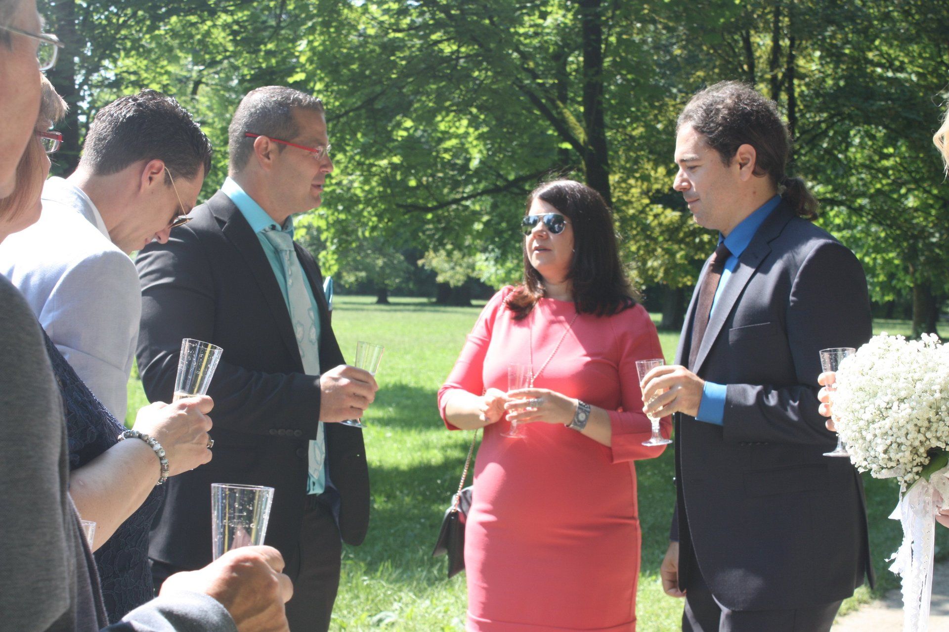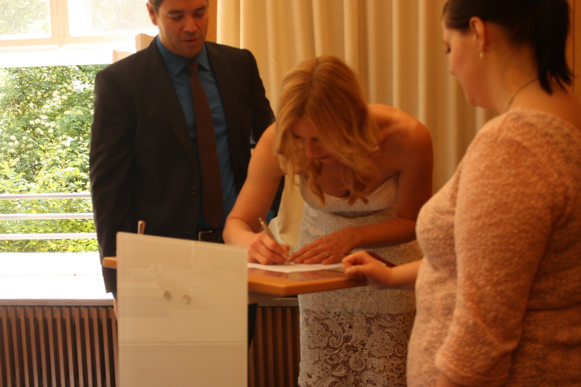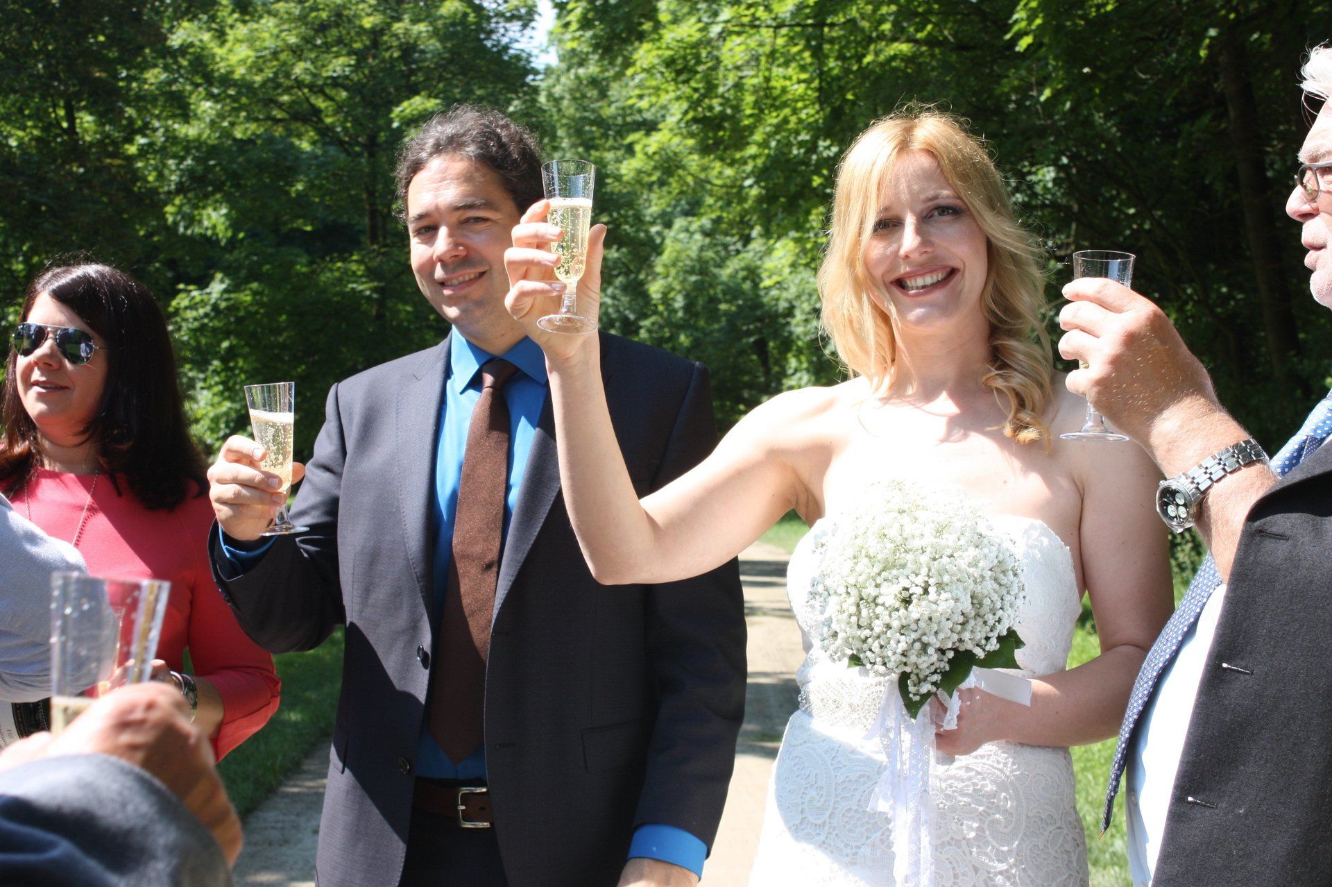 Unsere standesamtliche Trauung war sehr schön... Nur wir zwei, unser Hundekind Coco, unsere Trauzeugen und die Familie waren dabei. Wir hatten einen fabelhaften Tag mit strahlenden Sonnenschein am 06.06.16. Nach der Trauung sind wir in den englischen Garten spaziert,bei herrlichem Sonnenschein. Natürlich gab es Champagner zum Antsossen. Gefeiert haben wir dann in einem hübschen, kleinen Biergarten.